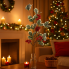 Ramo artificiale decorativo con bacche e foglie verdi, effetto realistico e naturale