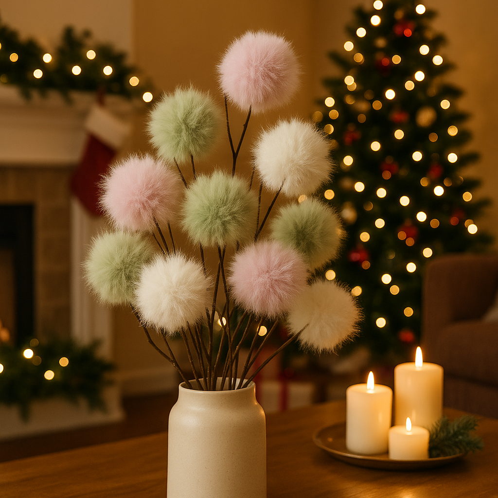 Ramo artificiale con pon-pon, fiore per decorazioni natalizie da 70 cm