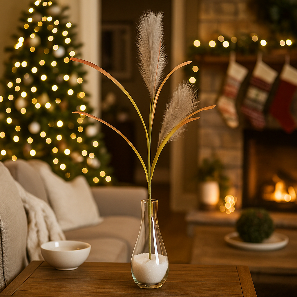 Dona un tocco di stile moderno e rilassato ai tuoi ambienti con il ramo decorativo “Khali” in pampas verde, perfetto per composizioni dal sapore naturale e dall'aspetto minimal ed elegante. La sua texture soffice e la sfumatura verde delicata richiamano la bellezza della natura, portando calma, armonia e movimento in ogni angolo della casa. Ideale per essere inserito in vasi alti, centrotavola o bouquet decorativi, si abbina facilmente a materiali neutri come il legno, la ceramica o il vetro.