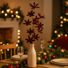 Questo ramo di camelie decorative, realizzato interamente in poliestere di altissima qualità, unisce la grazia floreale alla lucentezza di una finitura dorata pensata per impreziosire ogni spazio durante le festività natalizie.