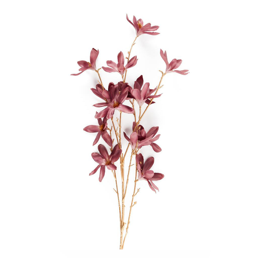 Ramo di camelie decorative con stelo dorato in poliestere per decorazioni natalizie