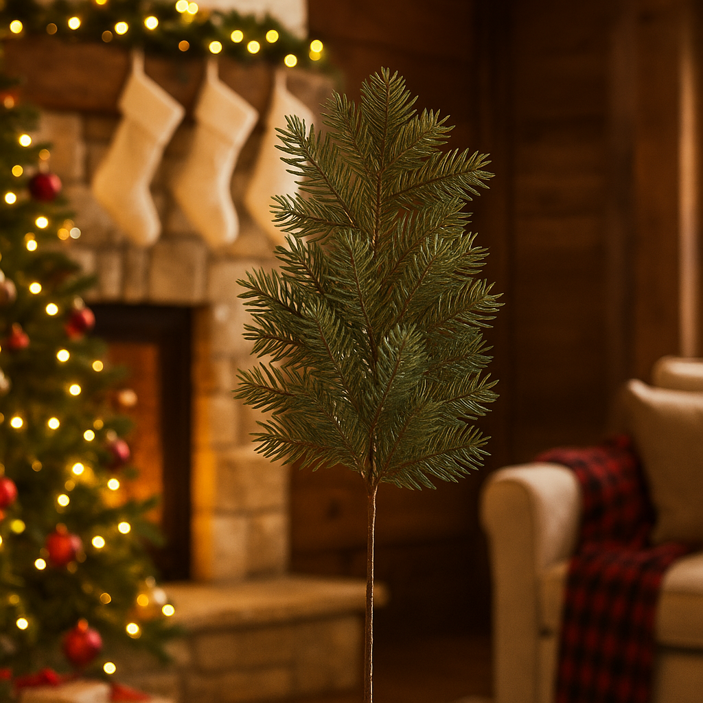 Un ramo di pino artificiale dal verde intenso, studiato per portare in casa il fascino dei boschi invernali senza perdere aghi e senza manutenzione. Con i suoi 58,5 cm di lunghezza è abbastanza lungo da sporgere con eleganza da vasi, ghirlande o centrotavola e, allo stesso tempo, maneggevole per progetti di fai‑da‑te e composizioni su mensole o camini.
