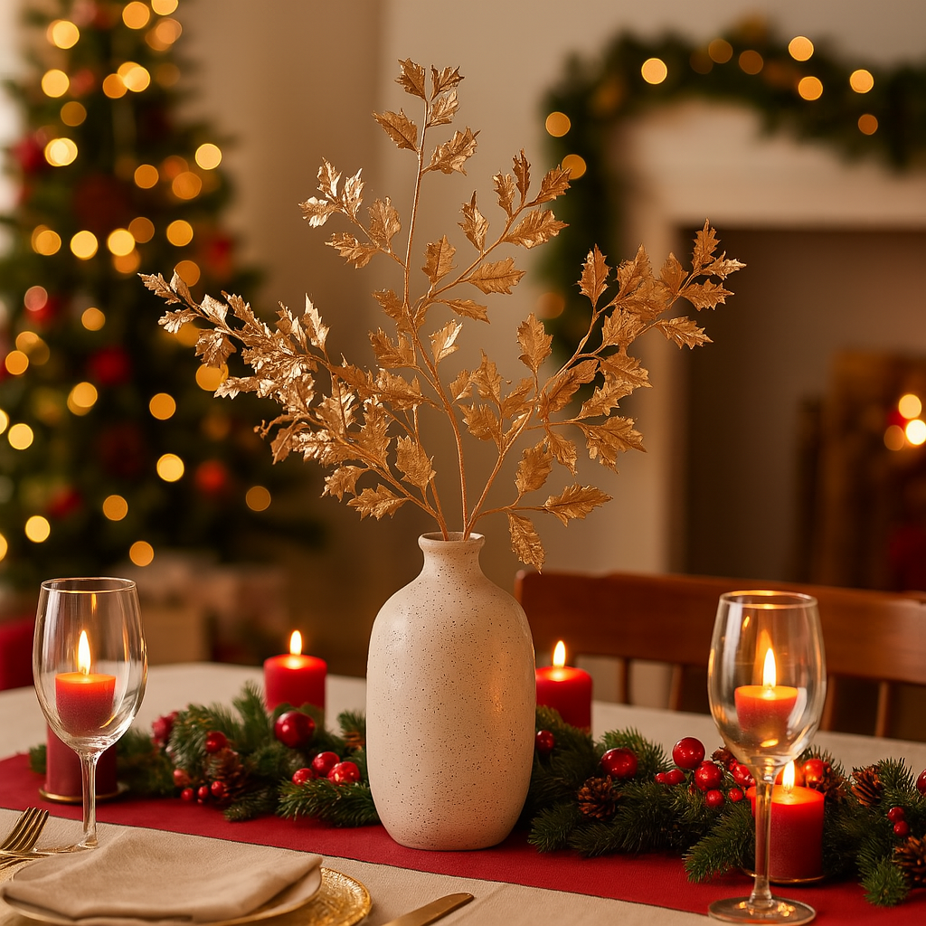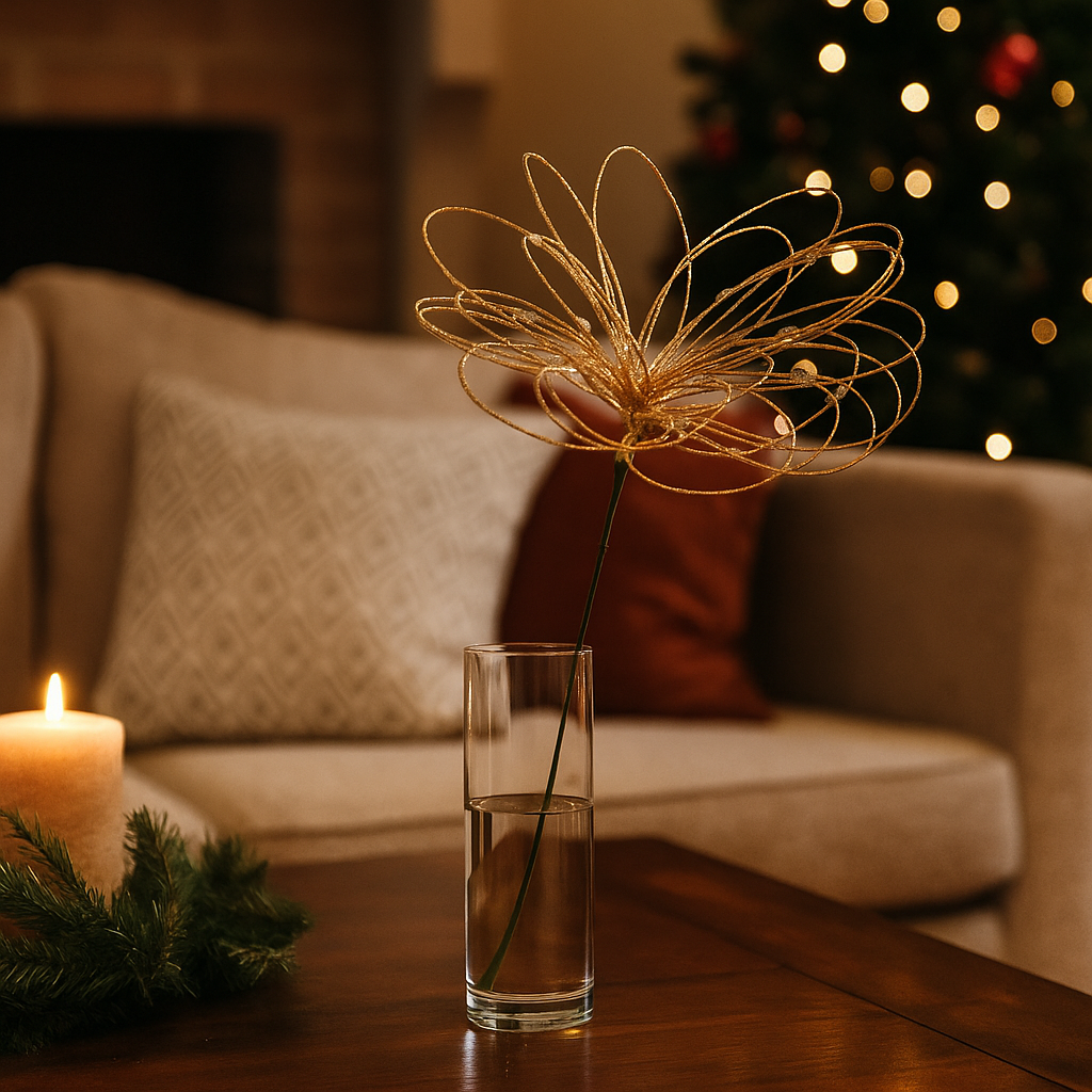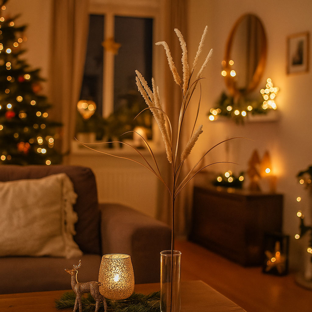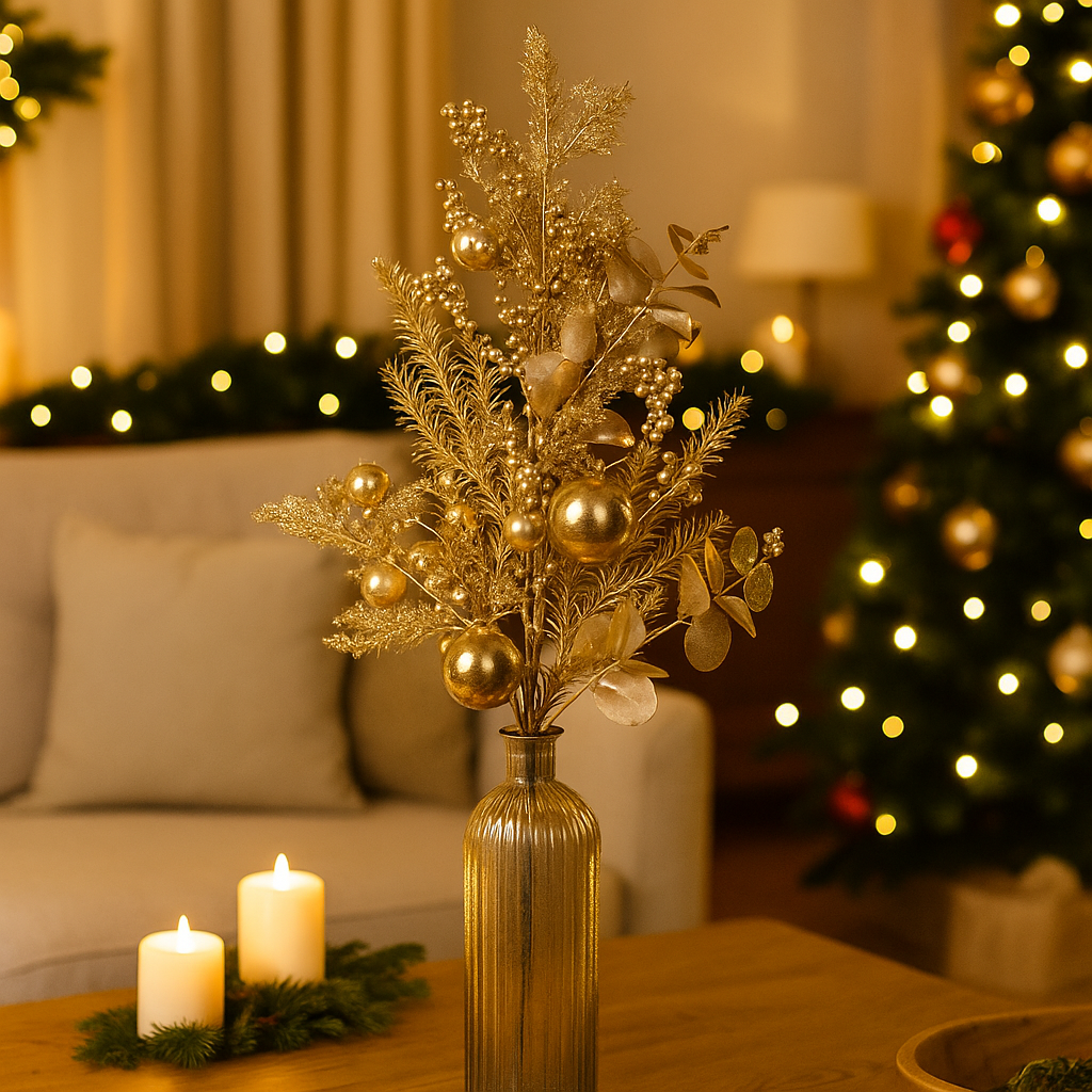 Porta un tocco di luce e raffinatezza alle tue decorazioni natalizie con questo elegante ramo dorato.