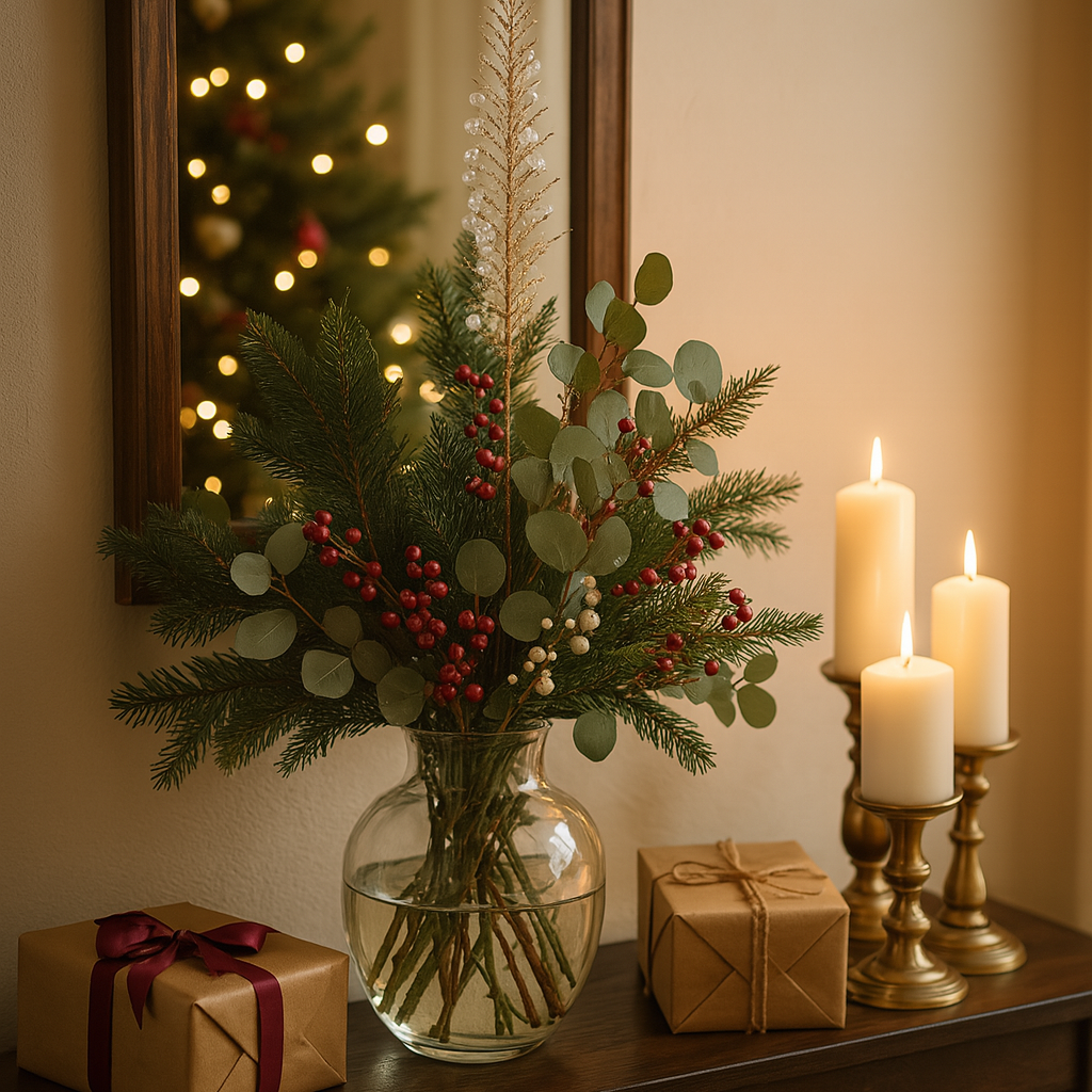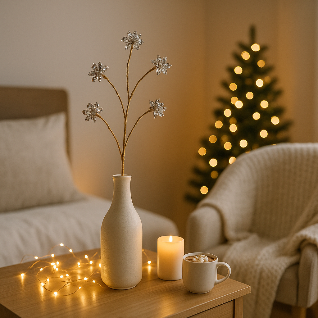 I pendagli decorativi completano l’insieme, donando movimento e un dettaglio ricercato perfetto per arricchire alberi di Natale, vasi alti o centrotavola.