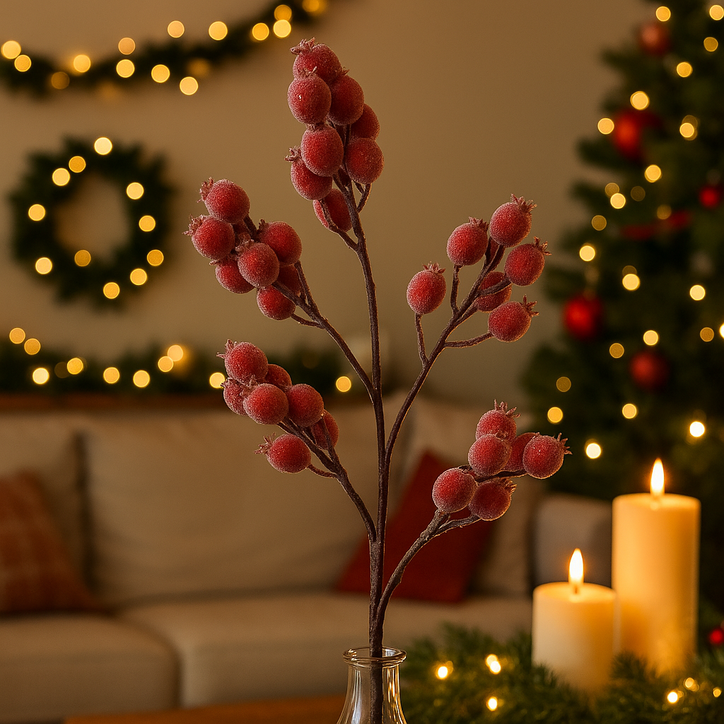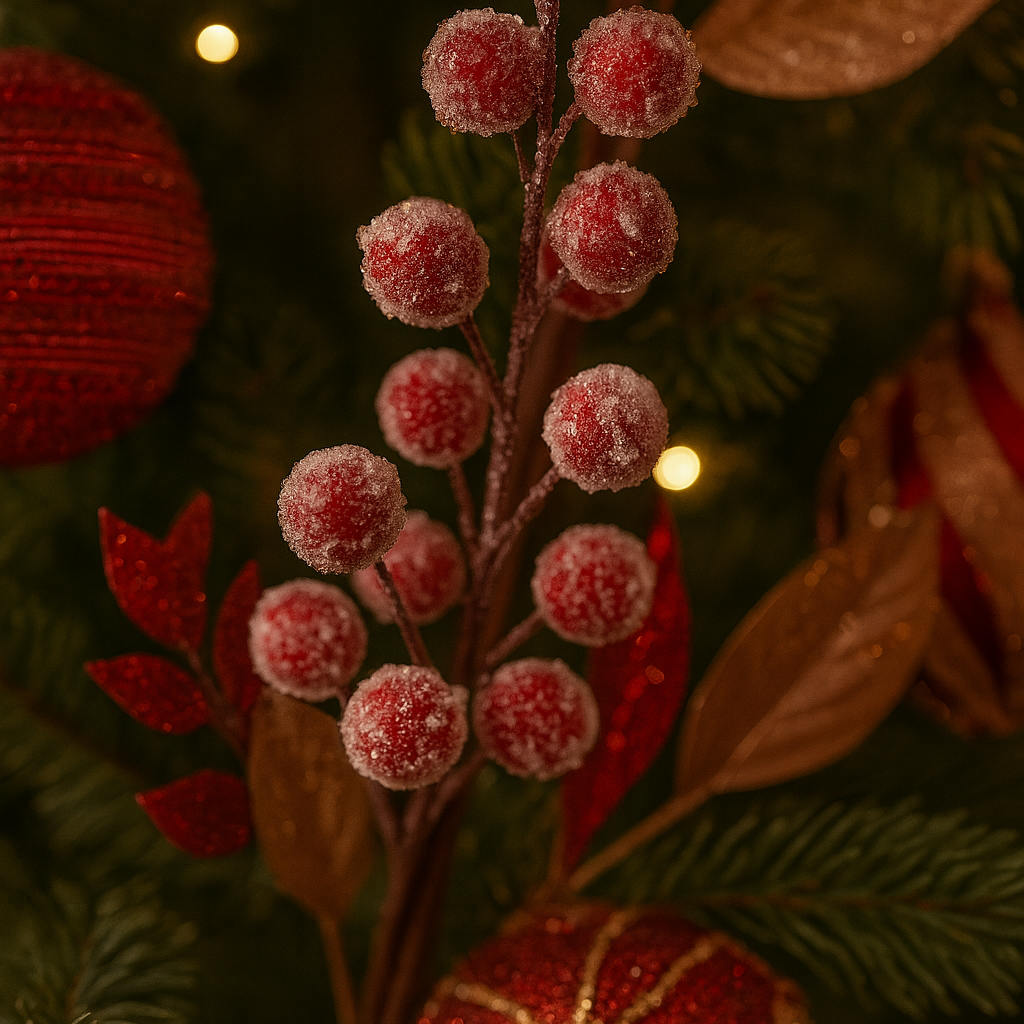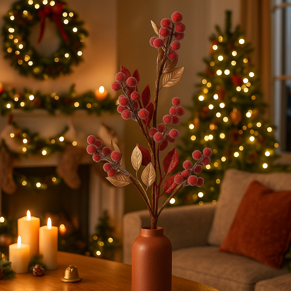 Ideale per completare alberi di Natale, ghirlande, centrotavola o composizioni floreali, questo ramo decorativo è il dettaglio che trasforma qualsiasi ambiente in un angolo glamour e festoso.