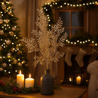 Illumina i tuoi ambienti con eleganza grazie al ramo natalizio color champagne con paillettes da 94 cm.