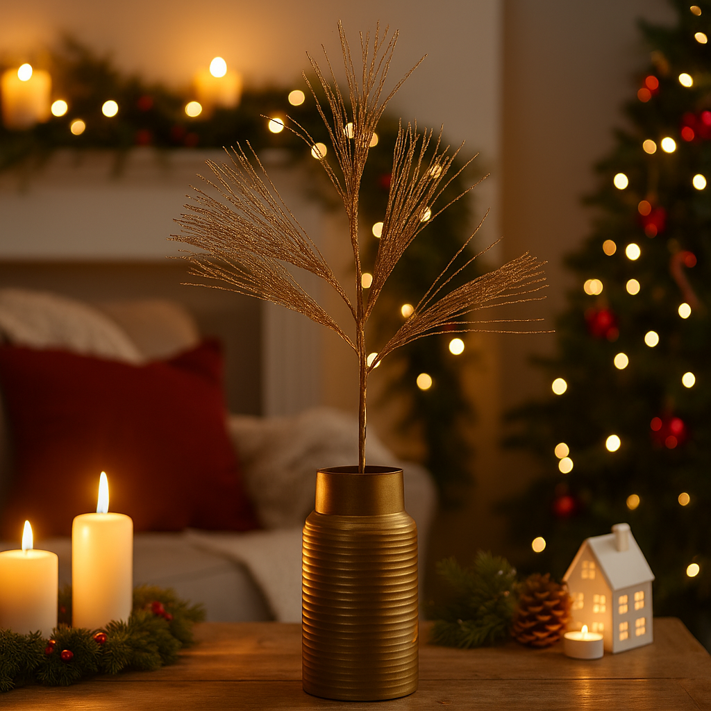 Realizzato in materiale metallico, il ramo offre una lucentezza sofisticata e un aspetto contemporaneo, ideale per decorazioni natalizie che puntano a un tocco di originalità e stile.