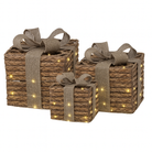 Regali natalizi in metallo colore marrone con luci LED per decorazioni natalizie, set da 3 pezzi