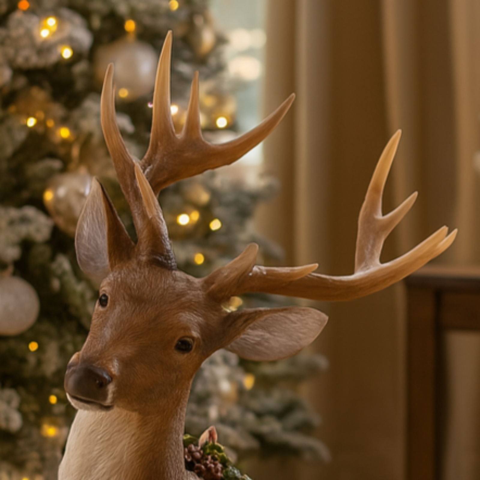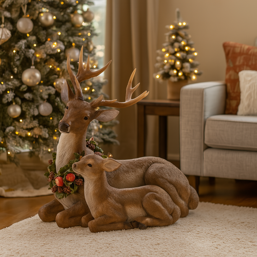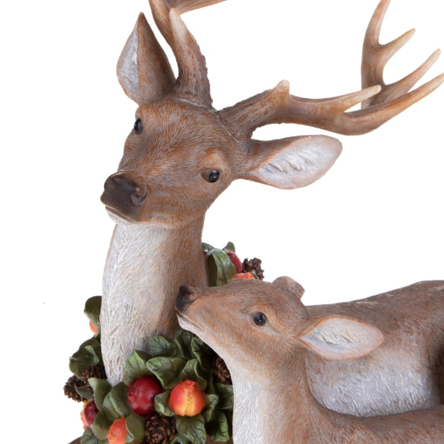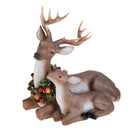 Renna seduta con cucciolo e ghirlanda, decorazione natalizia per esterno da 40 cm