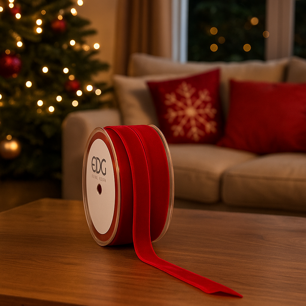 Aggiungi un tocco di lusso e luminosità alle tue decorazioni natalizie con questo elegante rotolo di tessuto vellutato.