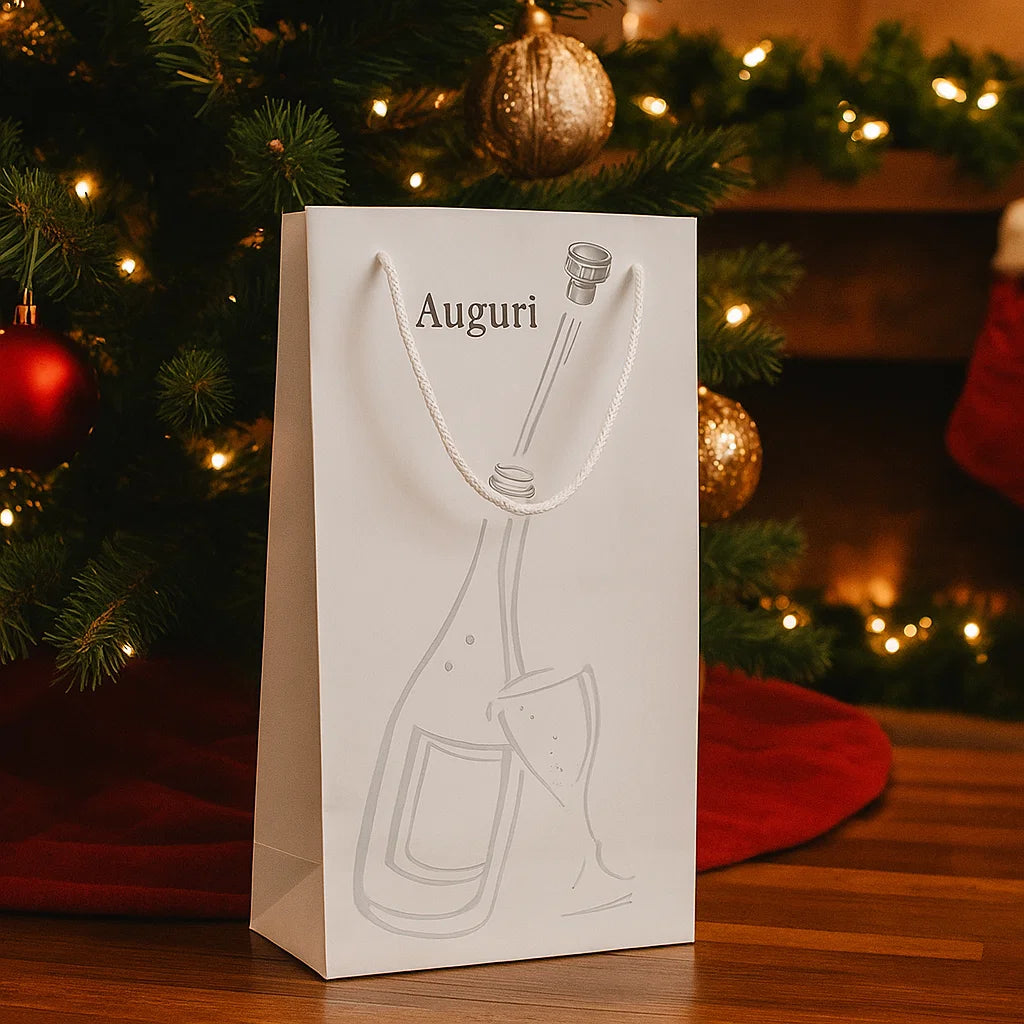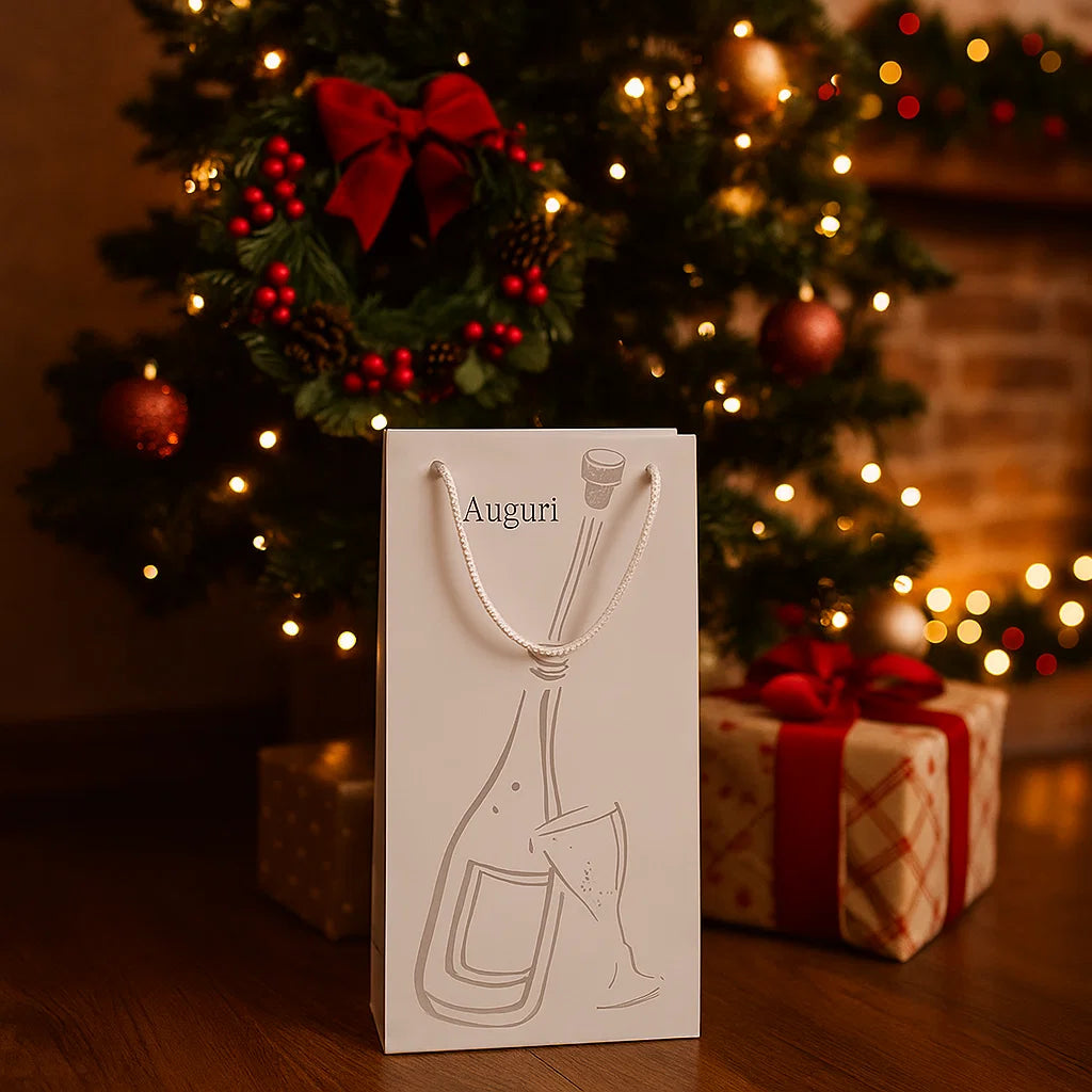 Le buste portabottiglie in carta sono shopper ecologiche, il materiale è sostenibile e resistente, il bordo risvoltato e la maniglia rinforzata, garantiscono un trasporto sicuro delle tue bottiglie.