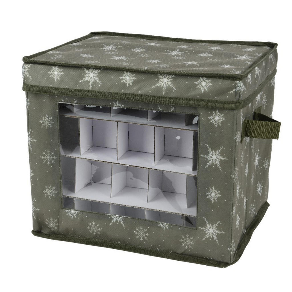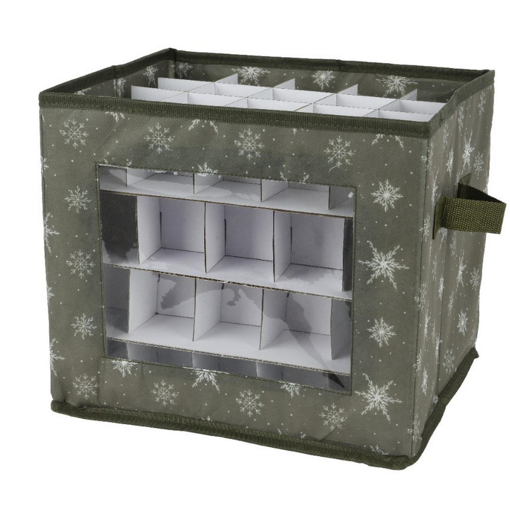Porta ordine e colore alle tue feste con la nostra scatola in poliestere verde dotata di doghe protettive, pensata per contenere fino a 64 palline natalizie.