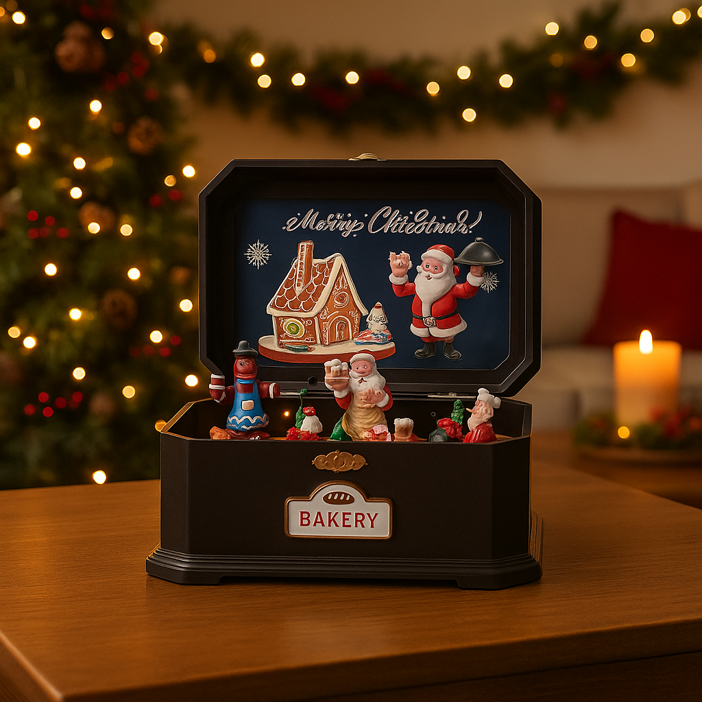All'interno della scatola, si trovano scene dettagliate che rappresentano vari momenti tipici del Natale.
