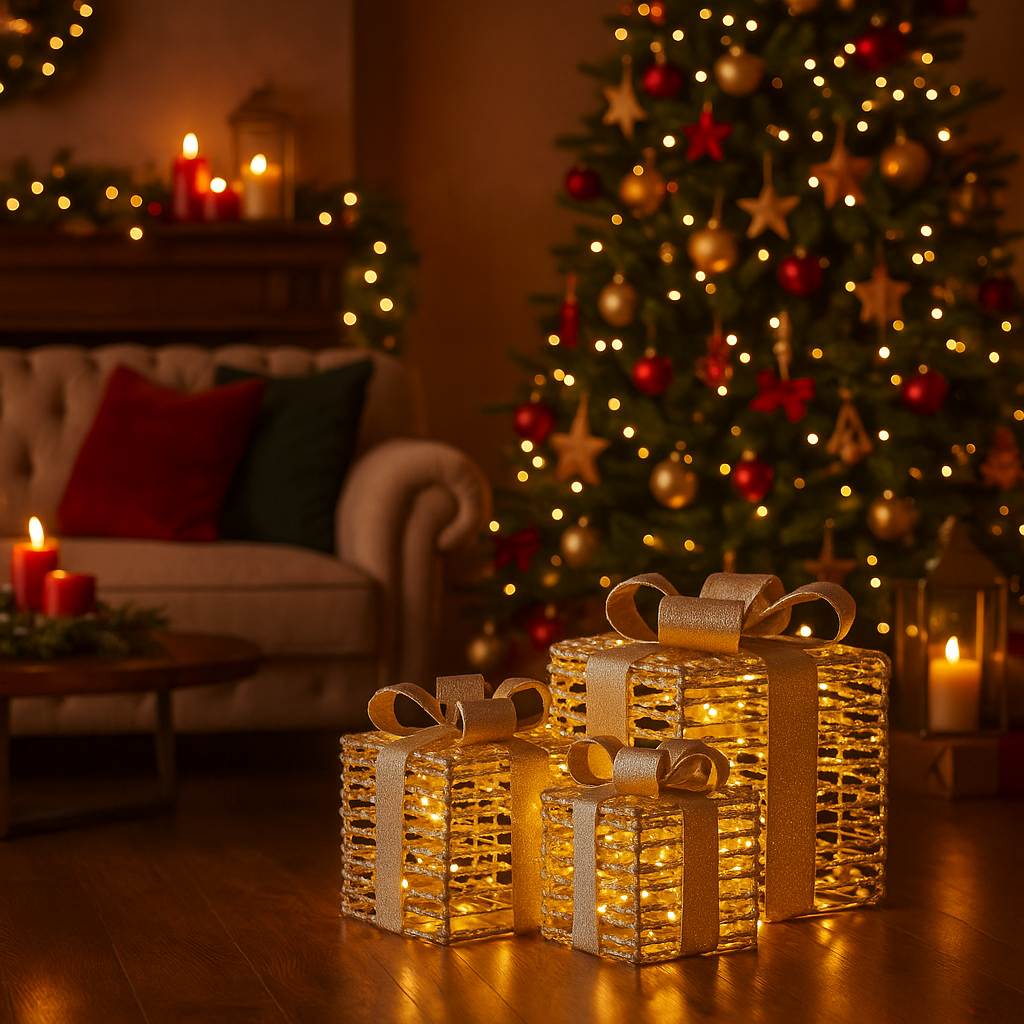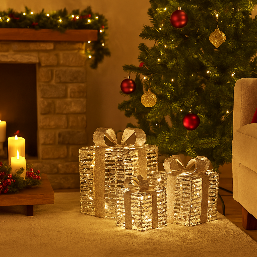 La scatola regalo con scena natalizia, luce e movimento a batteria rappresenta un'interpretazione incantevole della tradizione natalizia, combinando elementi decorativi classici con la moderna tecnologia interattiva.