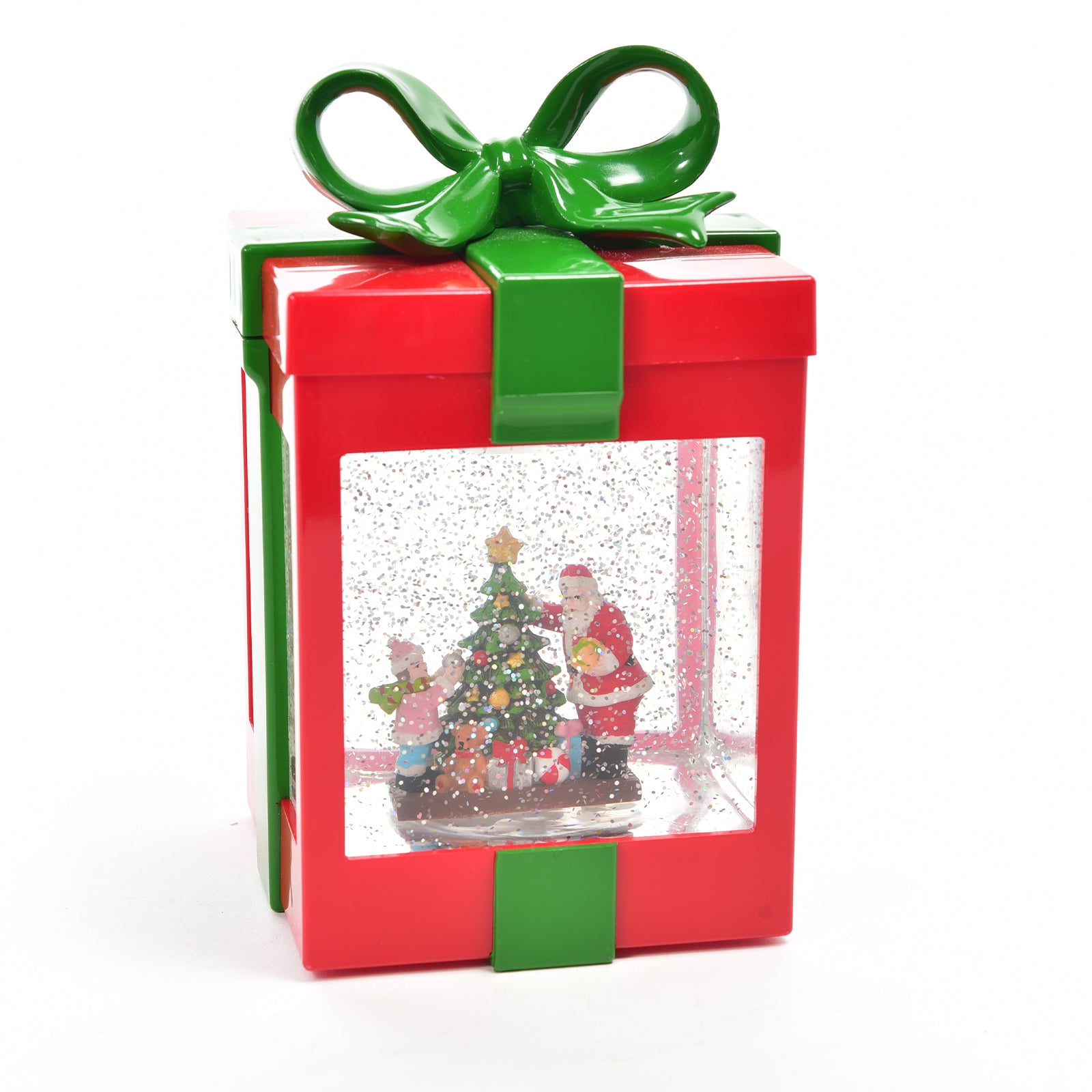 Scatola regalo con scena natalizia, luce e movimento a batteria decorazione natalizia