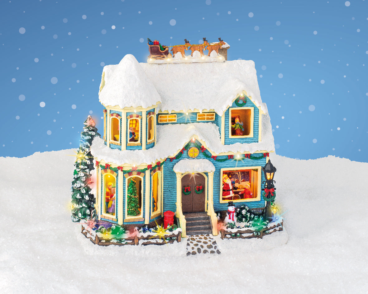 Scena animata a Led Casa in poliresina con musica e movimento, decorazione da 32,5 cm