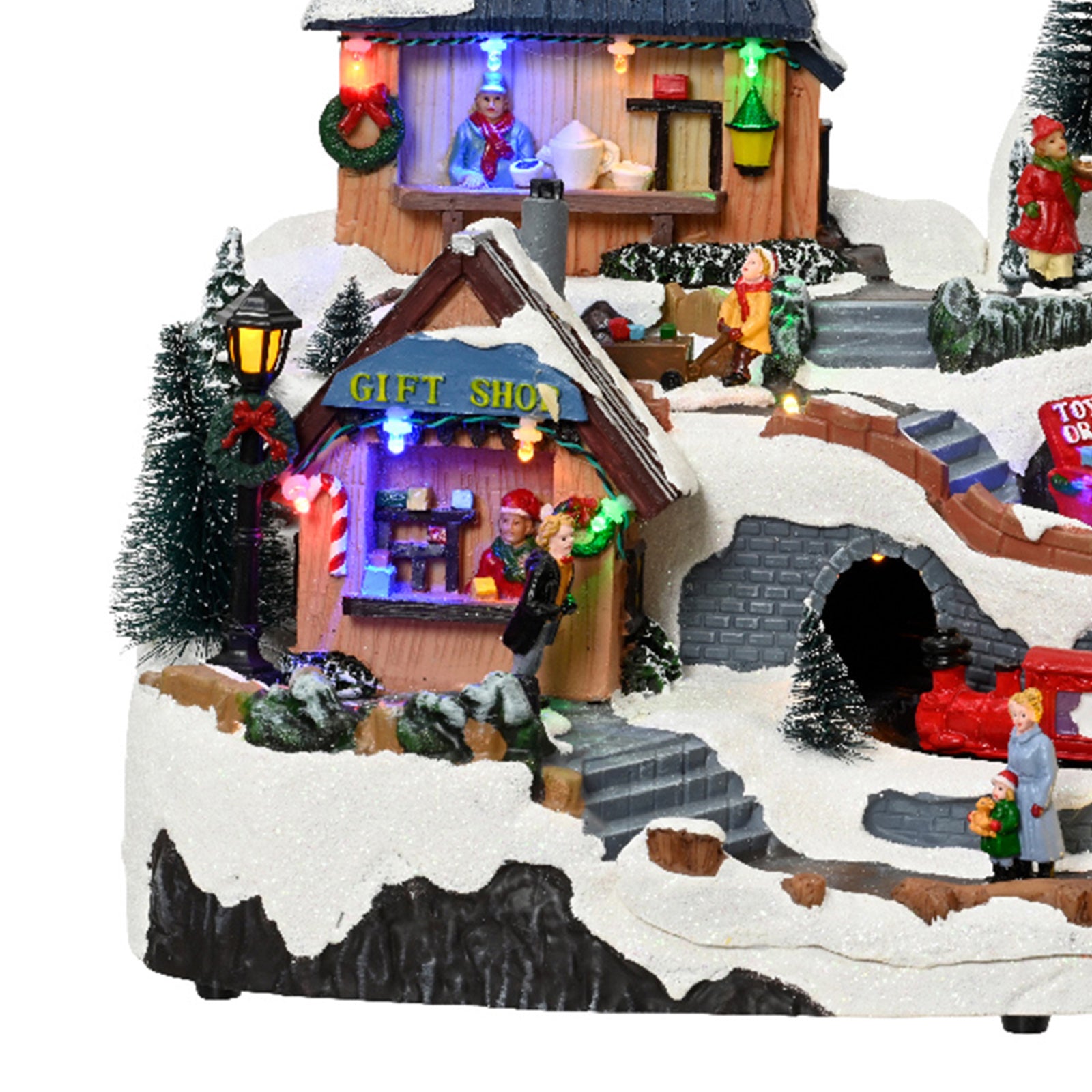 Scena animata a Led con negozi e babbo natale con luci e movimenti 40 cm