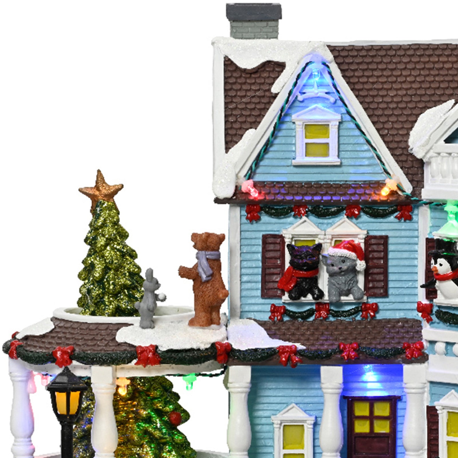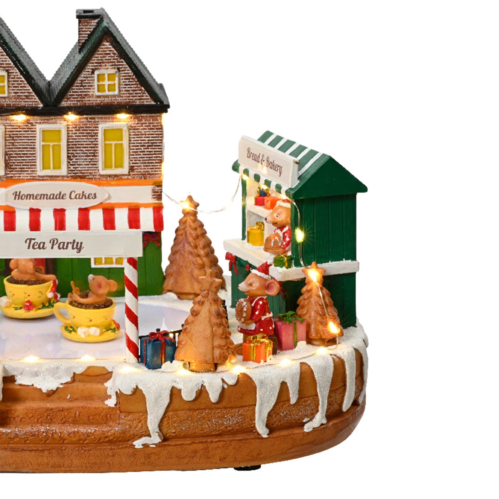 Scena animata a Led Stazione innevata del Villaggio di Natale , decorazione da 56,5 cm
