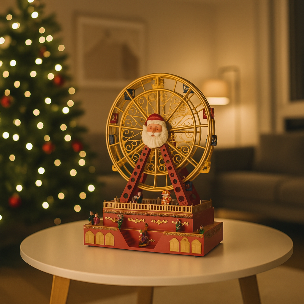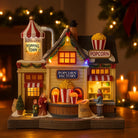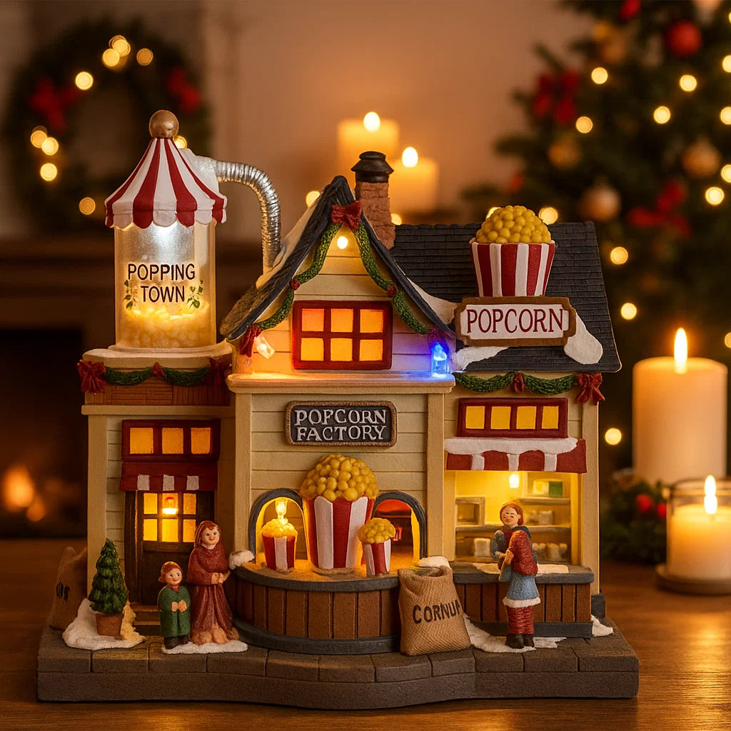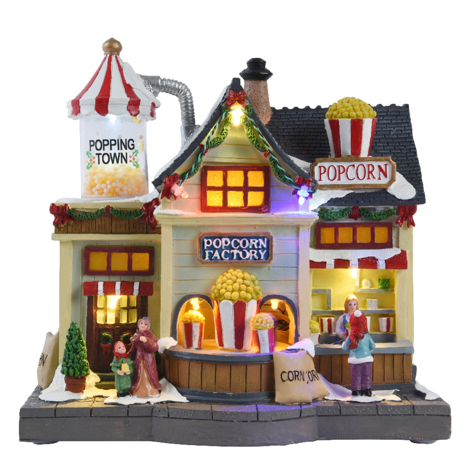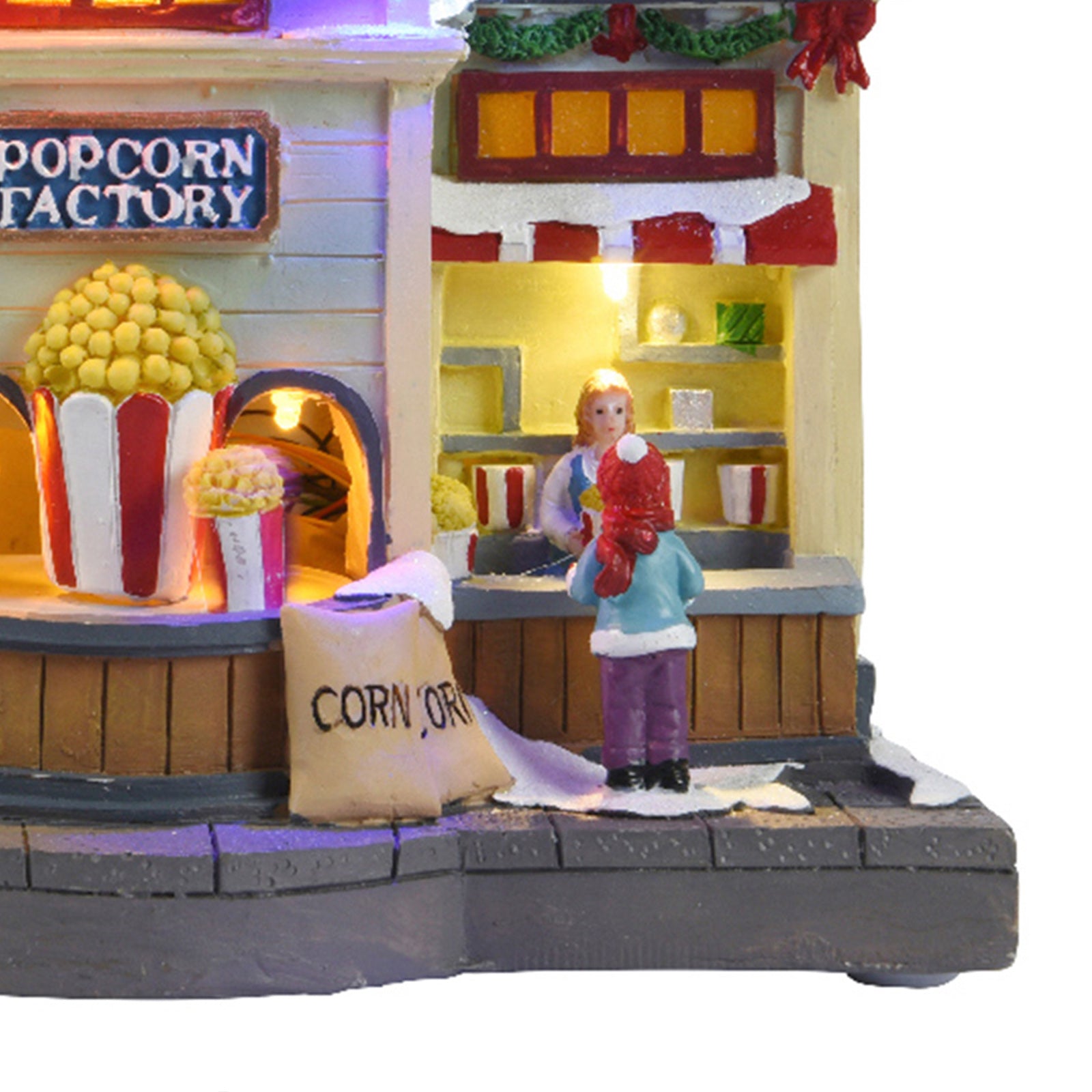 Scena animata "Negozio di pop corn" per villaggio di Natale con personaggi h 22 cm