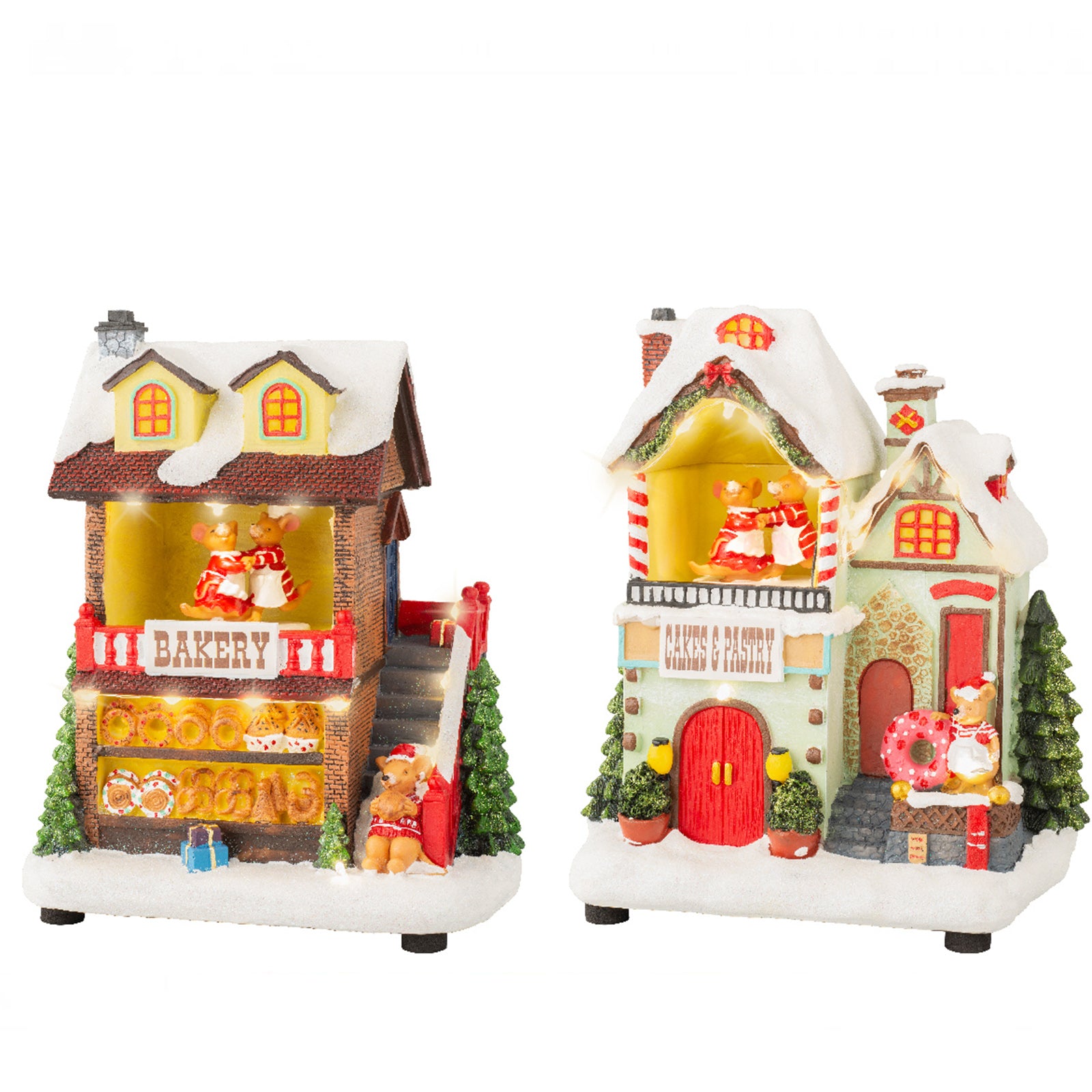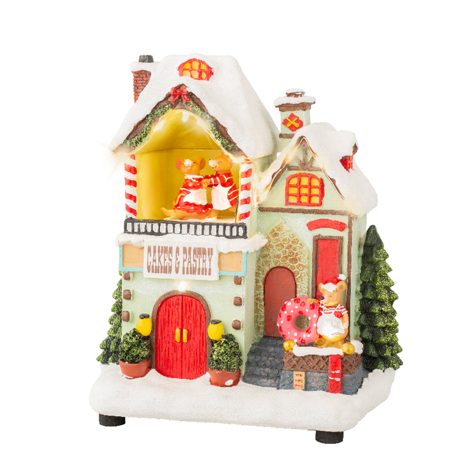 Scena animata "Pasticceria" per villaggio di Natale con personaggi h 21.5 cm