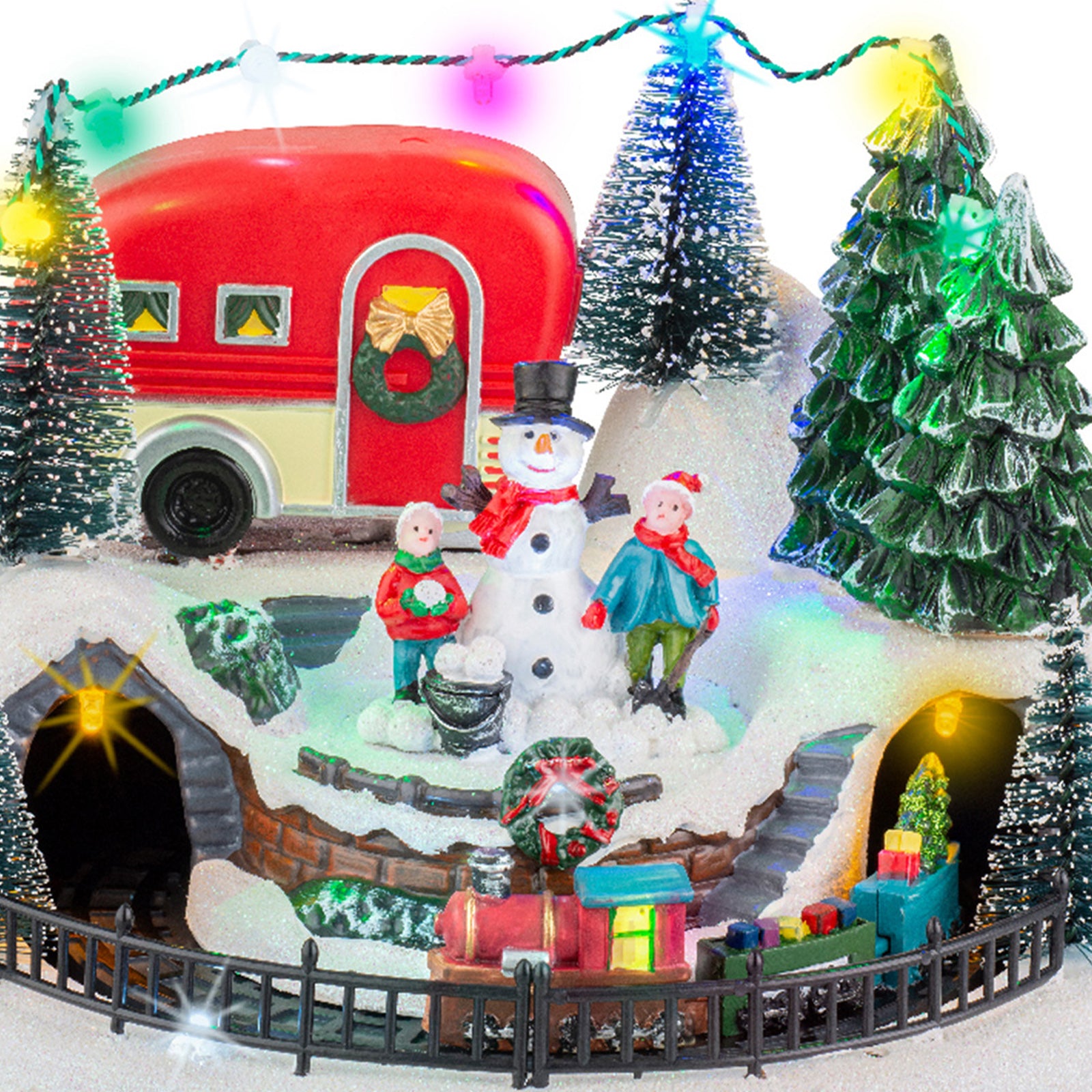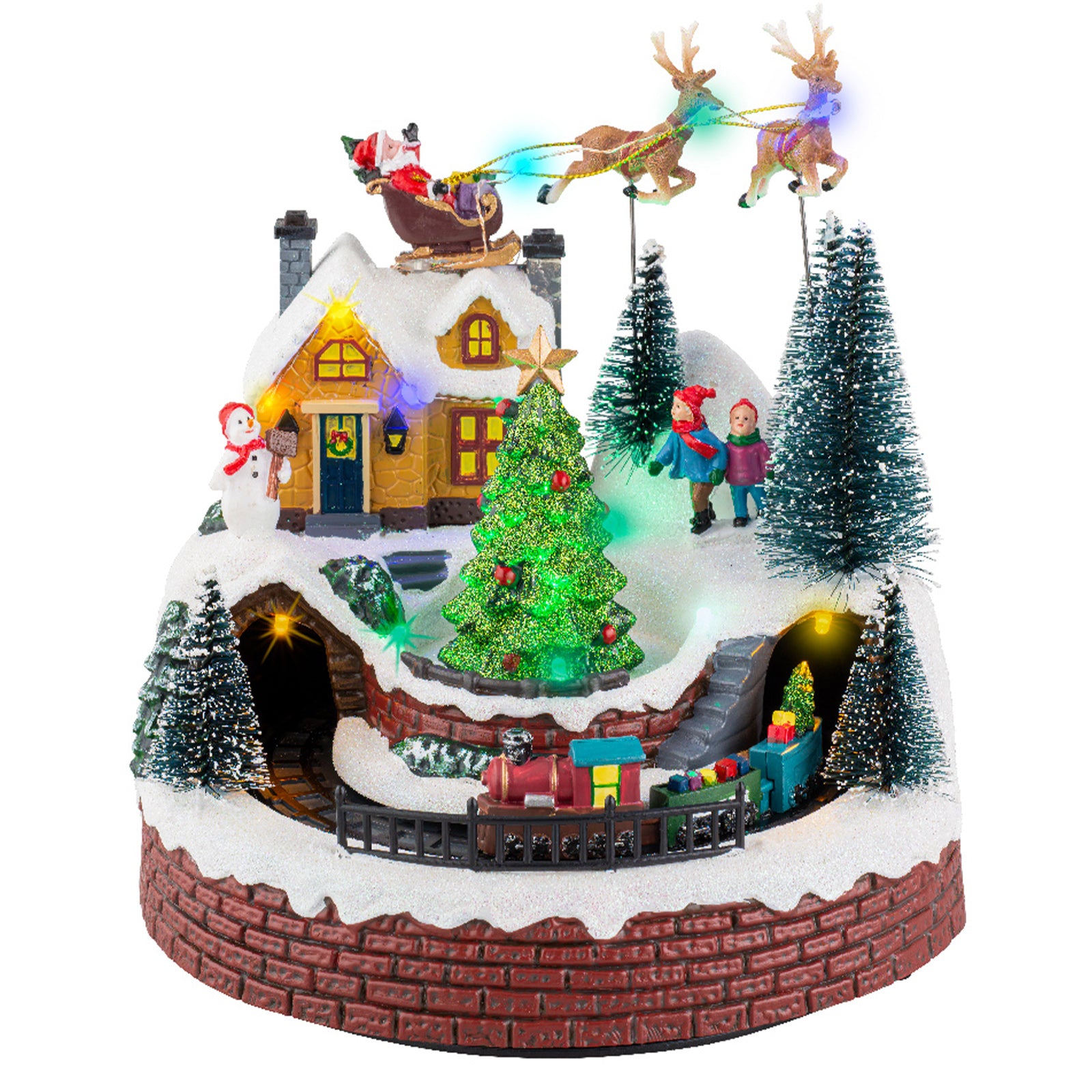 Scena animata per villaggio di Natale con personaggi con luci e movimento h 21 cm
