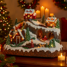 La scena animata per il villaggio di Natale con piste da sci e personaggi è la perfetta decorazione da interno per le festività.