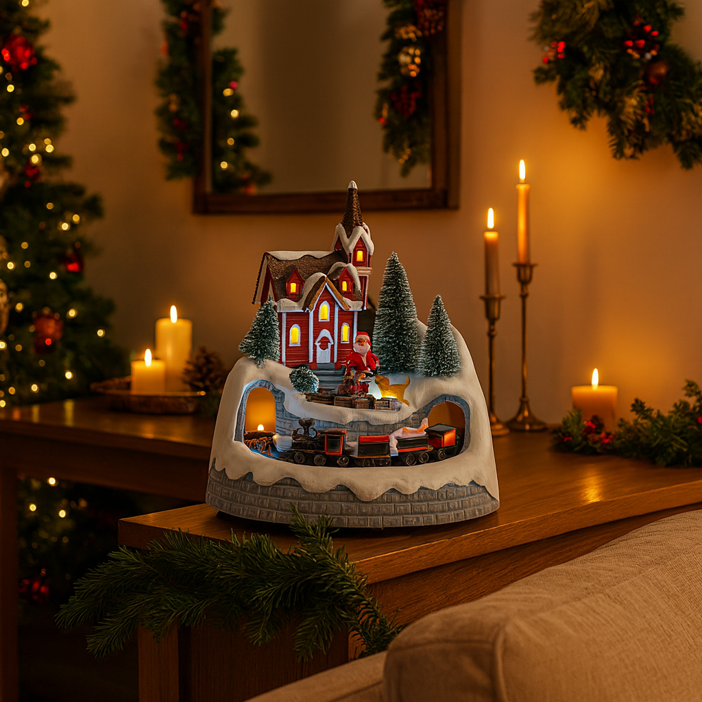 Perfetta da inserire in un villaggio di Natale o da esporre come elemento decorativo a sé, cattura subito l’attenzione e diffonde un’atmosfera festosa e accogliente.