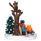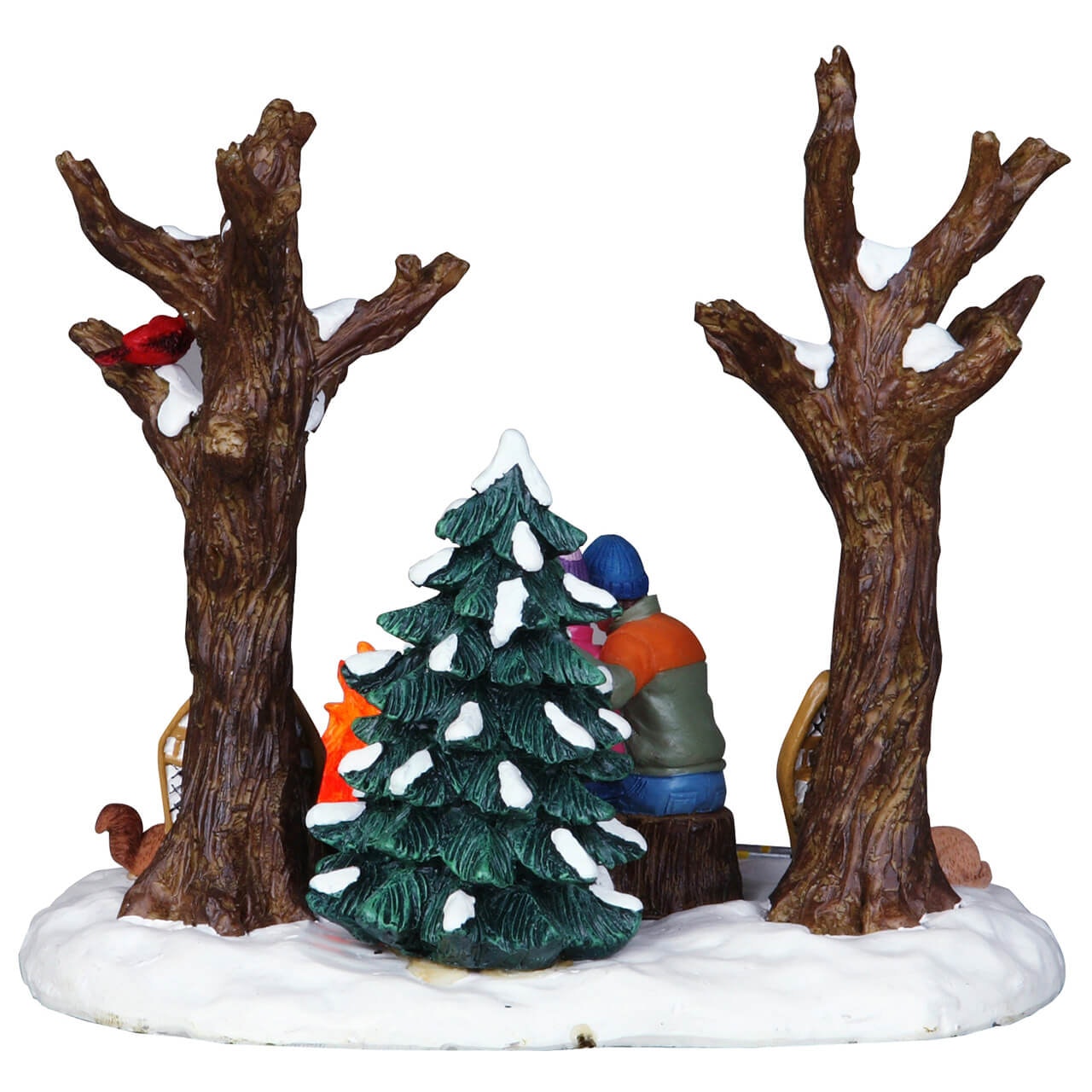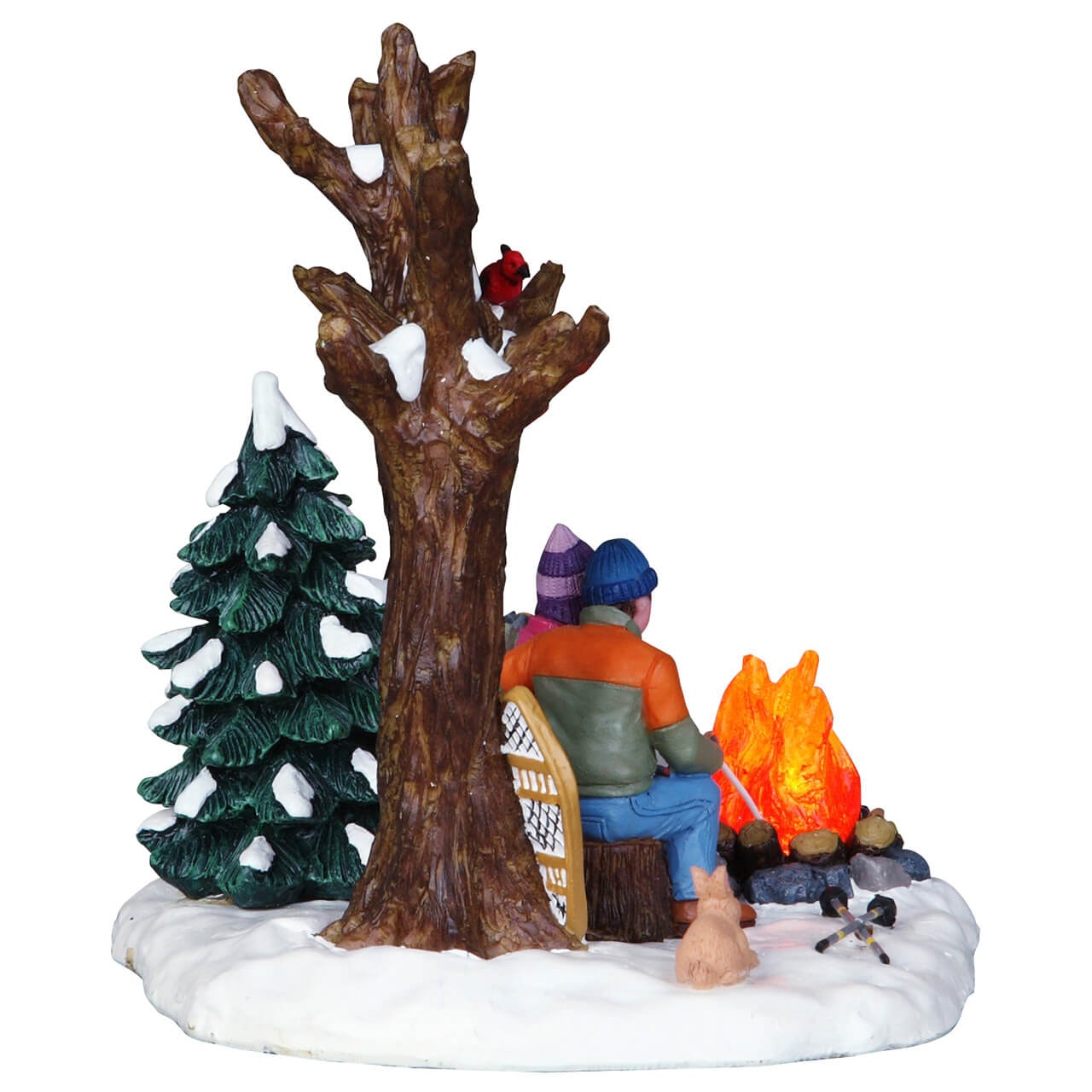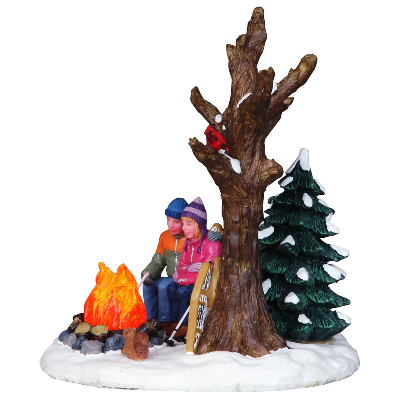 Questa scena rappresenta una dolce coppia si scalda davanti ad un falò in un bosco innevato, con fuoco illuminato!