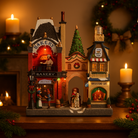 Scena Natalizia negozi vari illuminata con led decorazione per villaggio di Natale