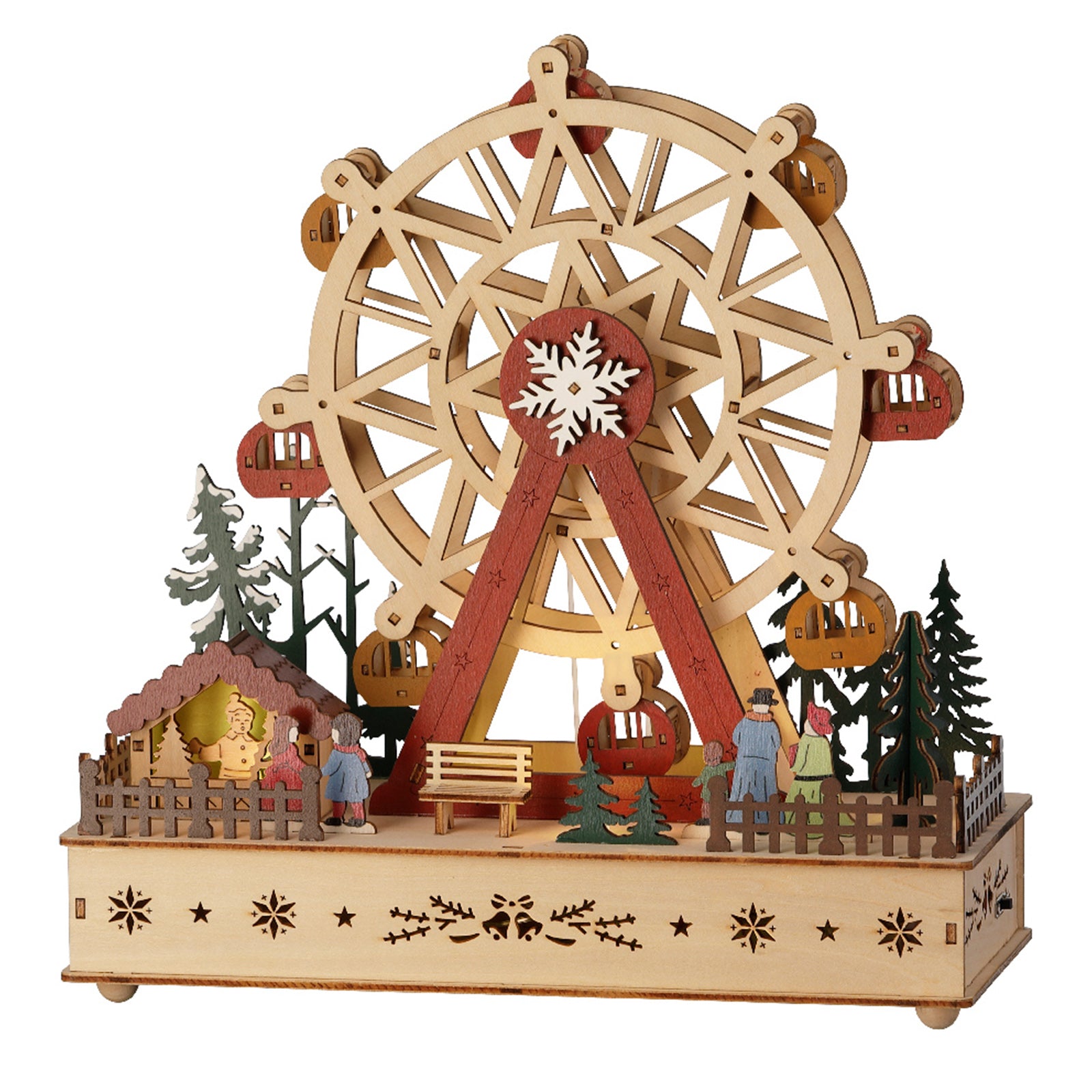 Scenario natalizio con ruota panoramica in compensato con Led, da 30 cm