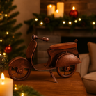 Il design accurato riproduce fedelmente i dettagli di uno scooter classico, includendo elementi come il manubrio, i fari, il sedile, le ruote e i dettagli del motore, tutti realizzati con una precisione artigianale che conferisce un effetto realistico e coinvolgente.