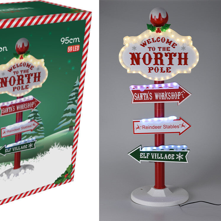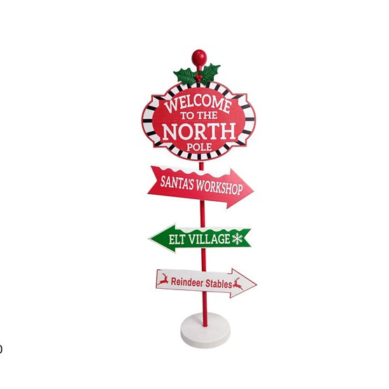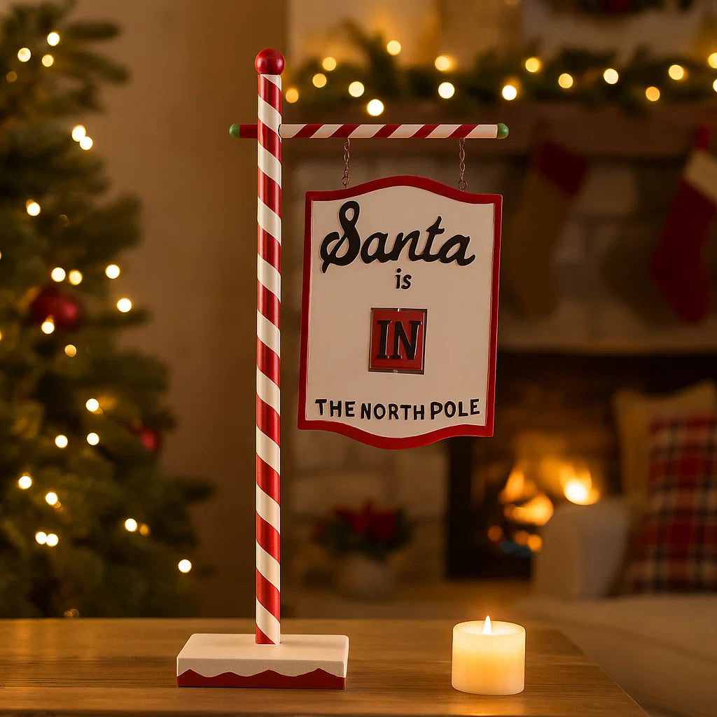 Segnaletica Santa is in/out Polo Nord decorazione natalizia in latta h 100 cm