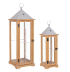 Set 2 Lanterna beatific alta in legno di abete e acciaio da esterno