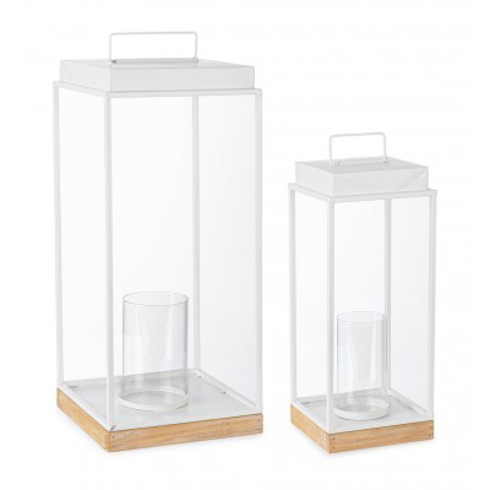 Set 2 Lanterna Cayley rettangolare bianca in legno e vetro da esterno