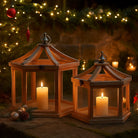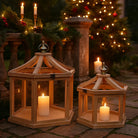 Set 2 Lanterna esagonale anticata in legno e metallo decorativa da esterno