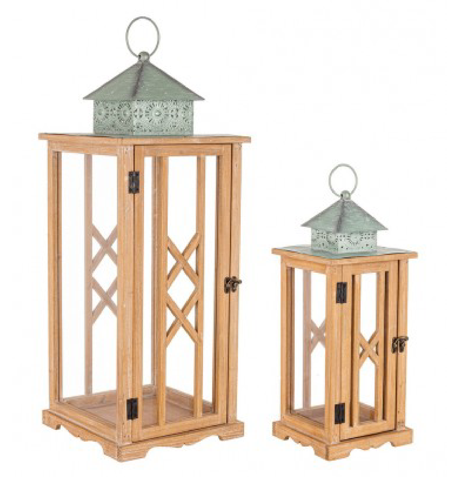 Il set include due dimensioni diverse: una lanterna di dimensioni 18x18x39h e una più grande di 26x26x59h.