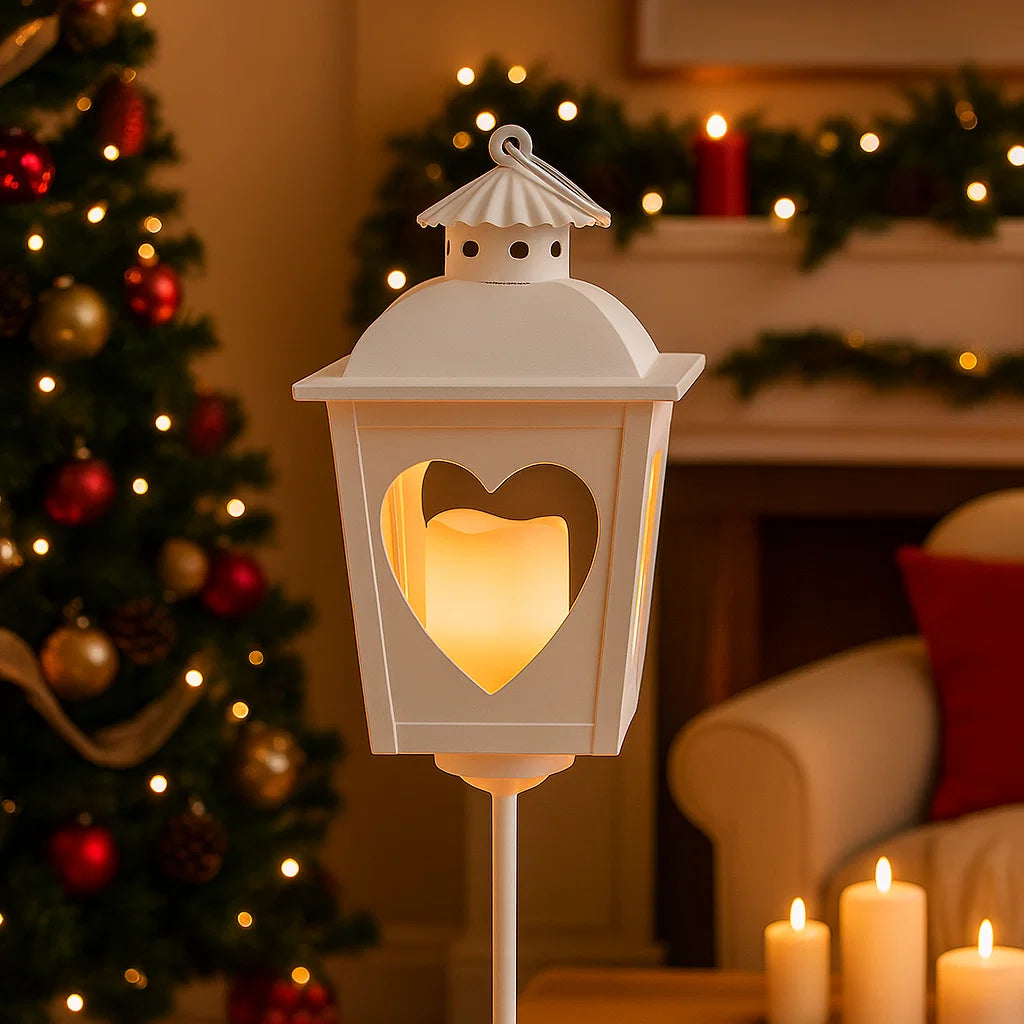 Set 2 Lanterne con cuore a batteria con candela effetto fiamma a led per interno