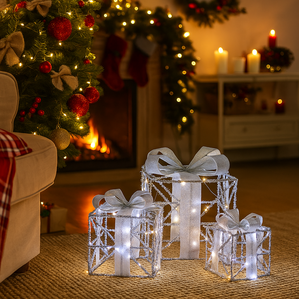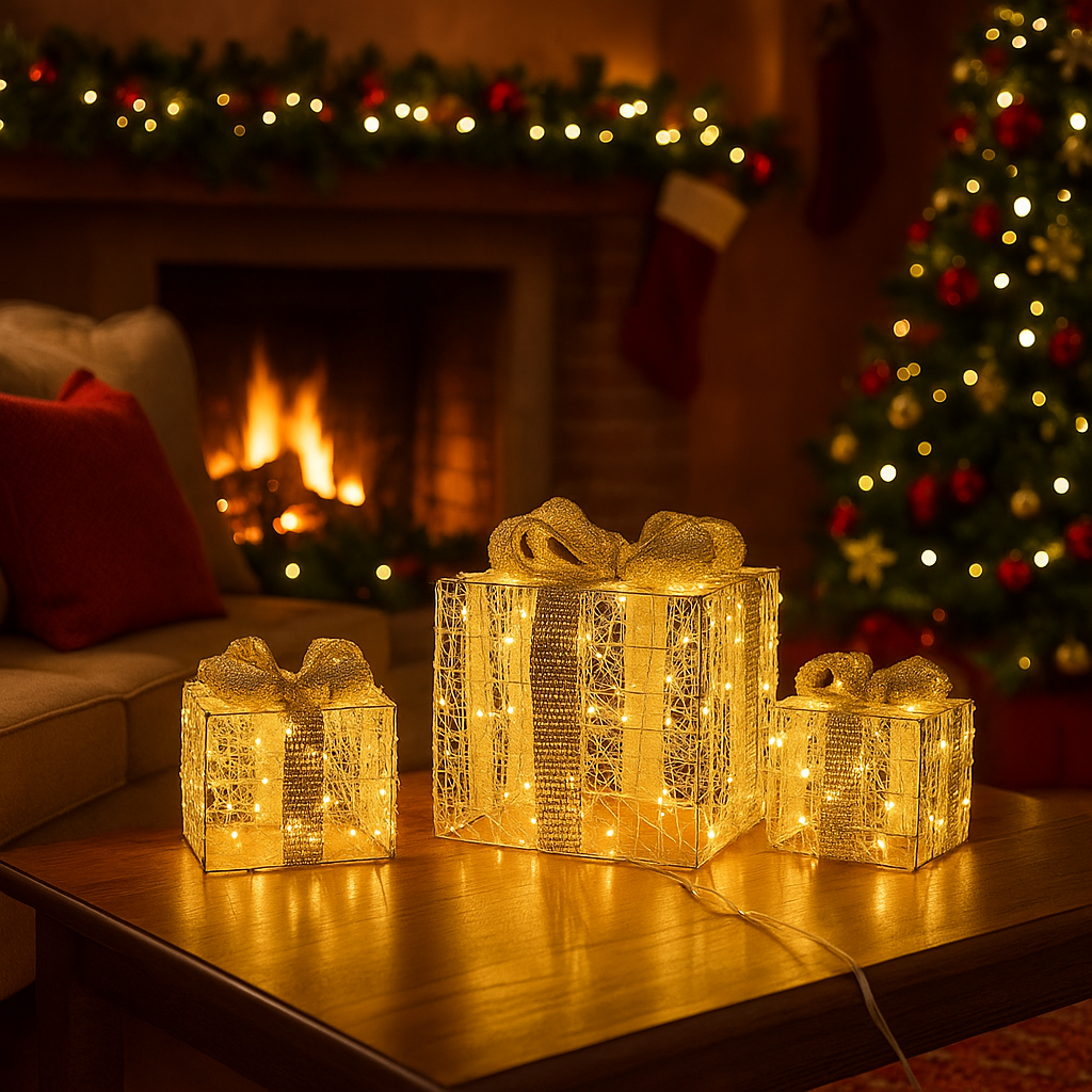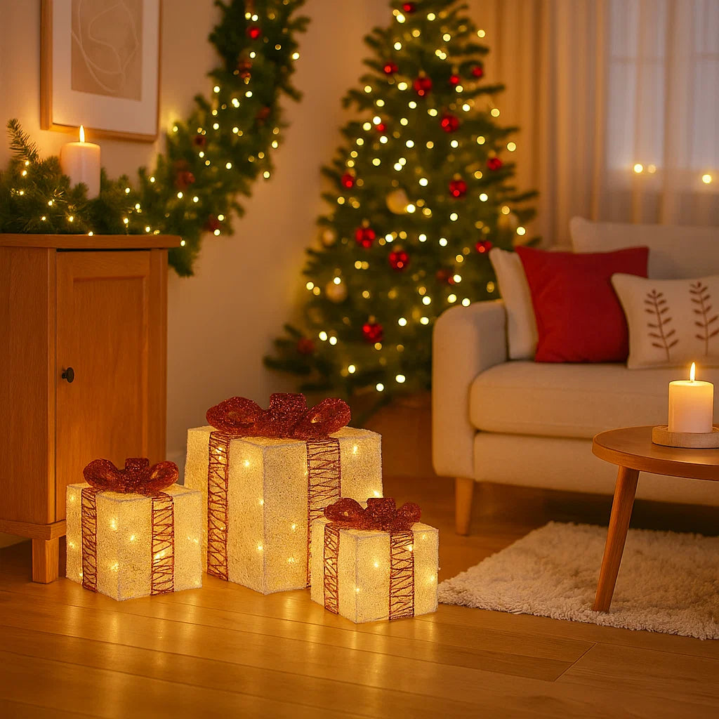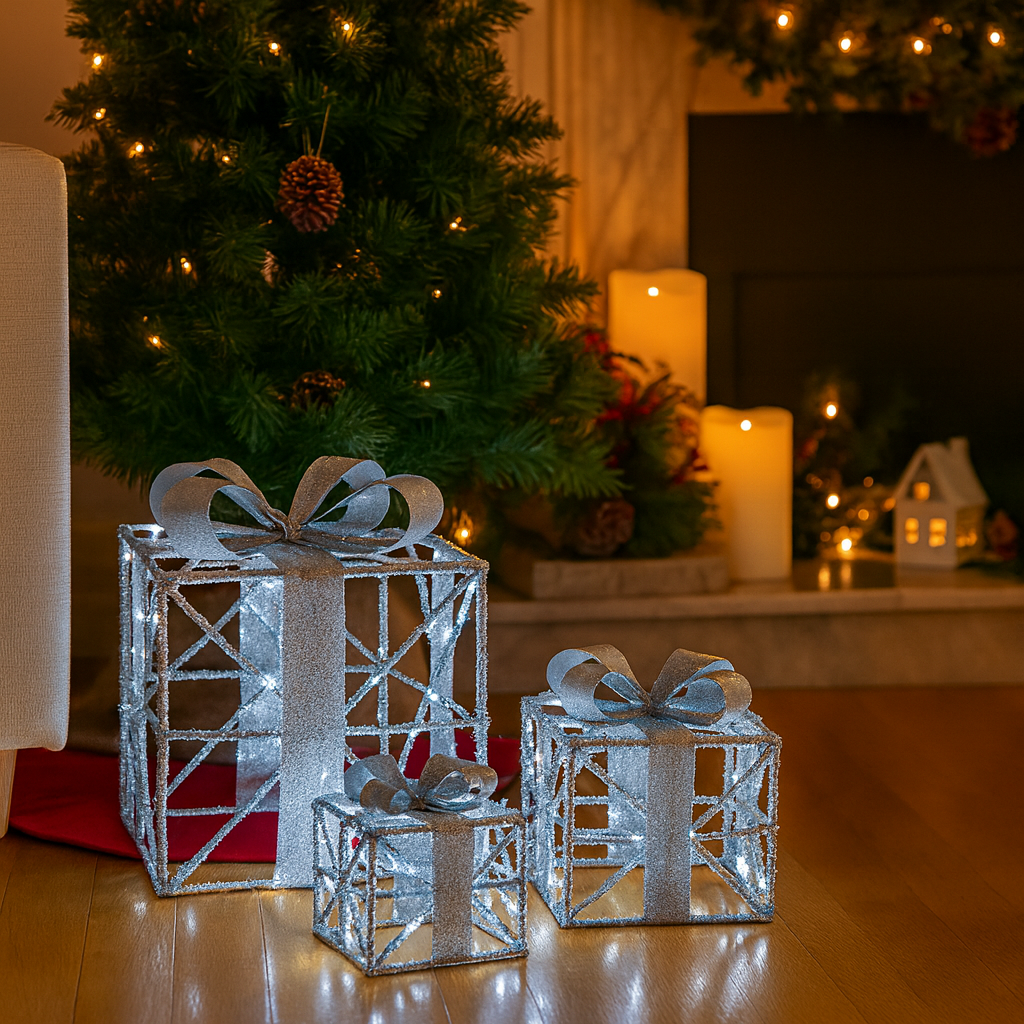 I pacchetti regalo sono dotati di luci al loro interno, che donano loro un effetto luminoso incantevole. Le luci creano una luce soffusa e accogliente, che aggiunge un tocco magico al tuo spazio durante le festività. Puoi scegliere tra diverse opzioni di illuminazione, come luci a LED o luci a filo, a seconda delle tue preferenze.