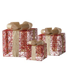 Set 3 pacchi regalo luminoso con stelle color oro e rosso per uso interno ed esterno