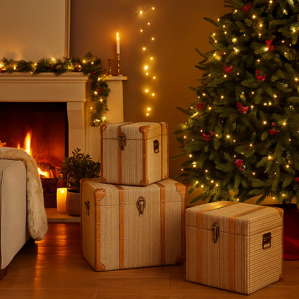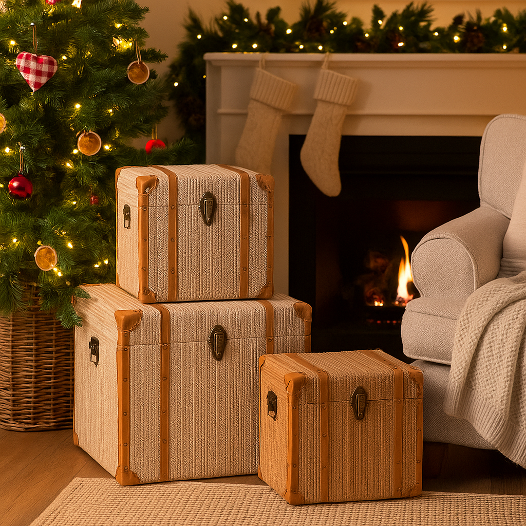 Questo elegante set di bauli valigia della linea “Wilfred” è la scelta perfetta per arricchire i tuoi spazi con un dettaglio raffinato e versatile, che unisce praticità e stile retrò.