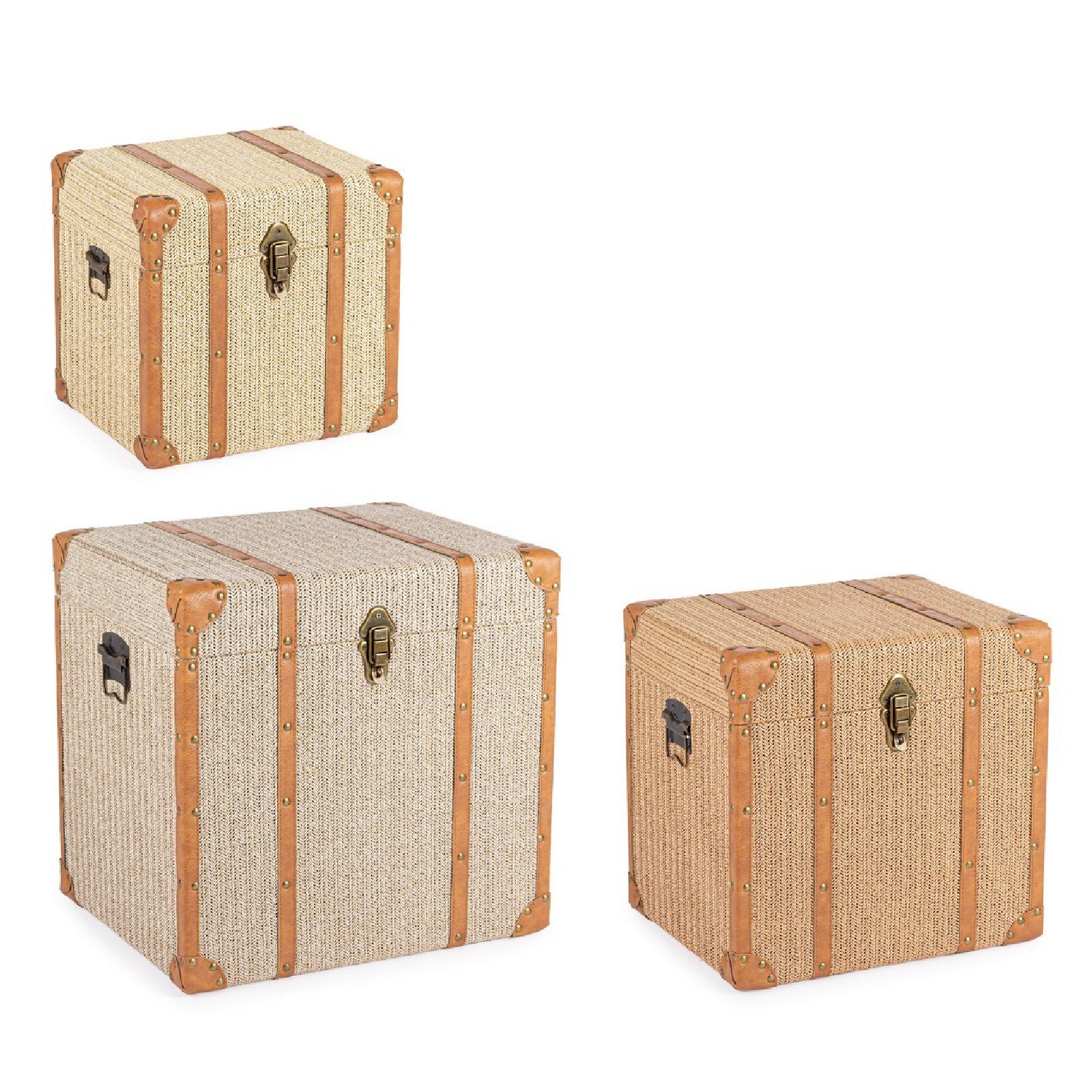 Set da 3 pz baule valigia "Wilfred" beige e marrone in mdf e similpelle