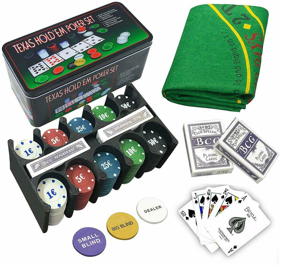 Set da Poker completo per giochi da tavola con 200 Chip e scatola in ferro