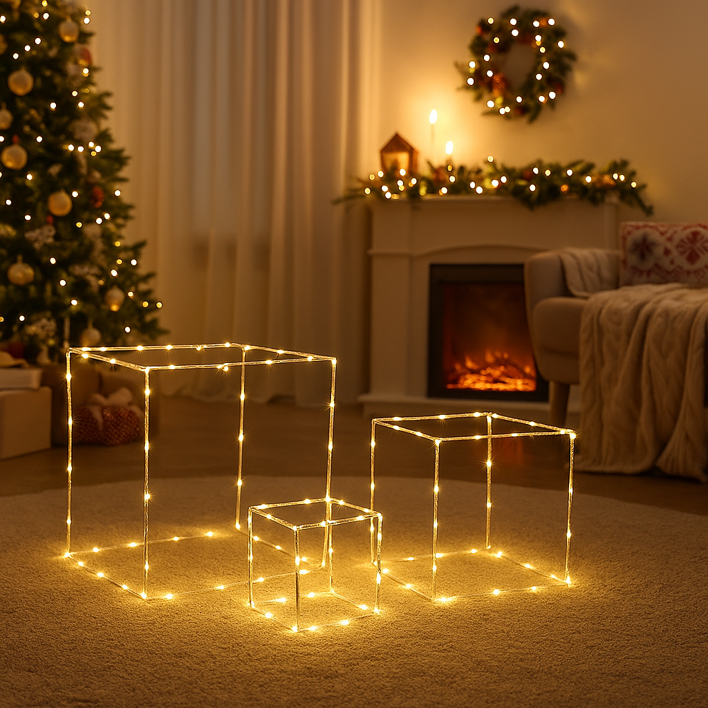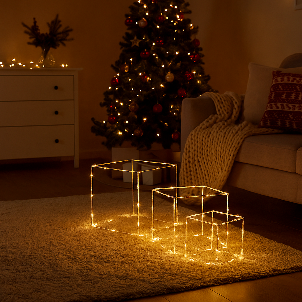Set di 5 cubi decorazione natalizia uso interno luce per natale con microled