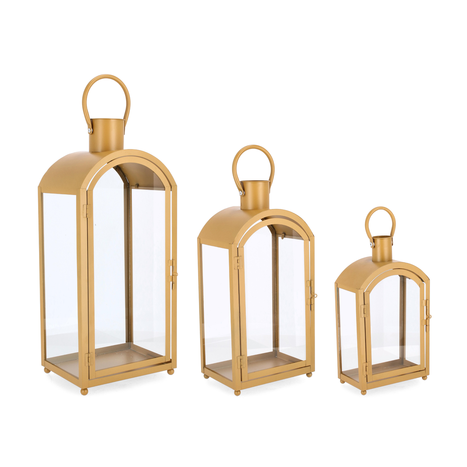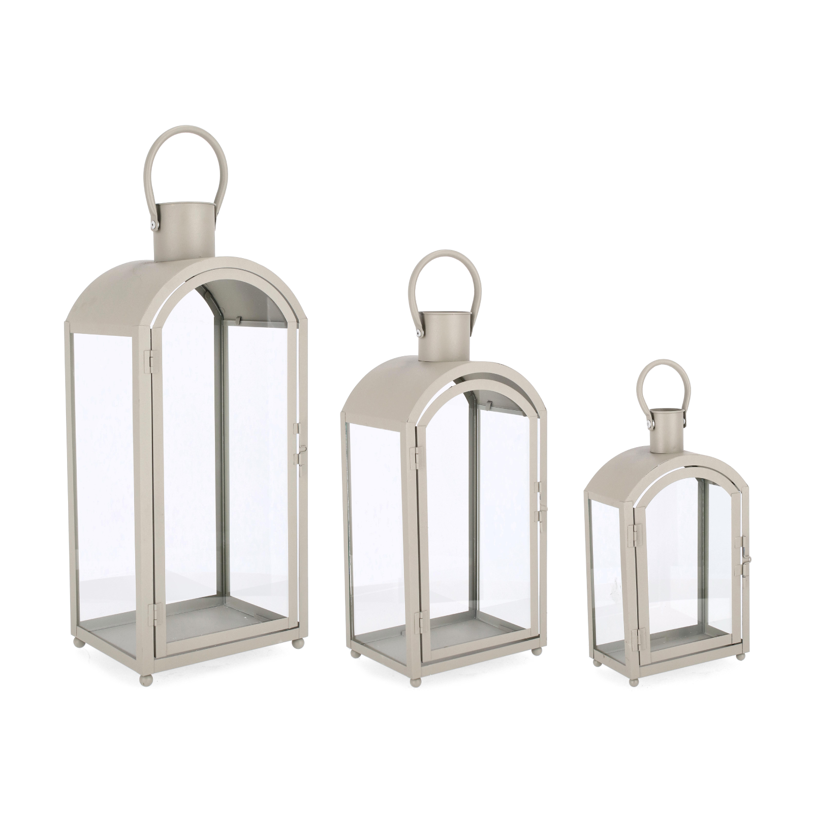 Le dimensioni delle lanterne sono rispettivamente 18x10x32h, 20,5x14,5x43h, e 24,5x18,5x56h, offrendo una varietà di opzioni per l'uso e la disposizione.