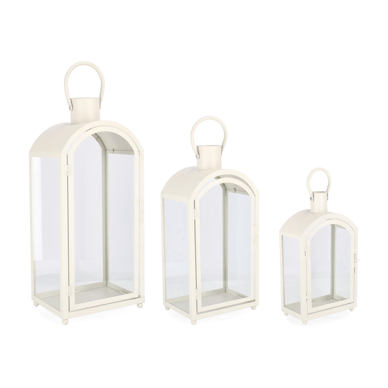 Il set di 3 lanterne Jillian rett bianco rappresenta un'eccellente combinazione di eleganza e praticità. Realizzato con materiali di alta qualità, tra cui metallo e vetro, questo set aggiunge un tocco di stile e raffinatezza a qualsiasi ambiente domestico o esterno.