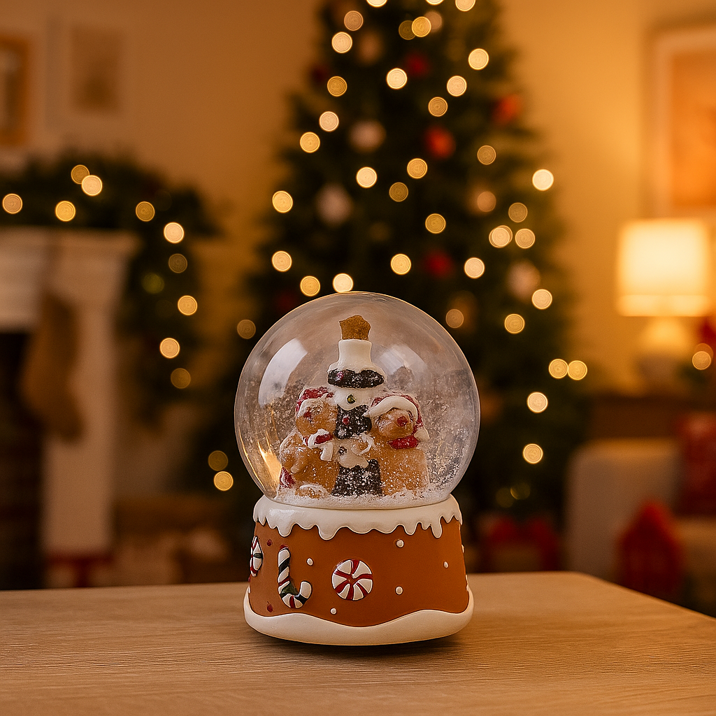 Aggiungi un tocco di magia e dolcezza alla tua decorazione natalizia con questa affascinante sfera con acqua "Marzapane Biscotto".