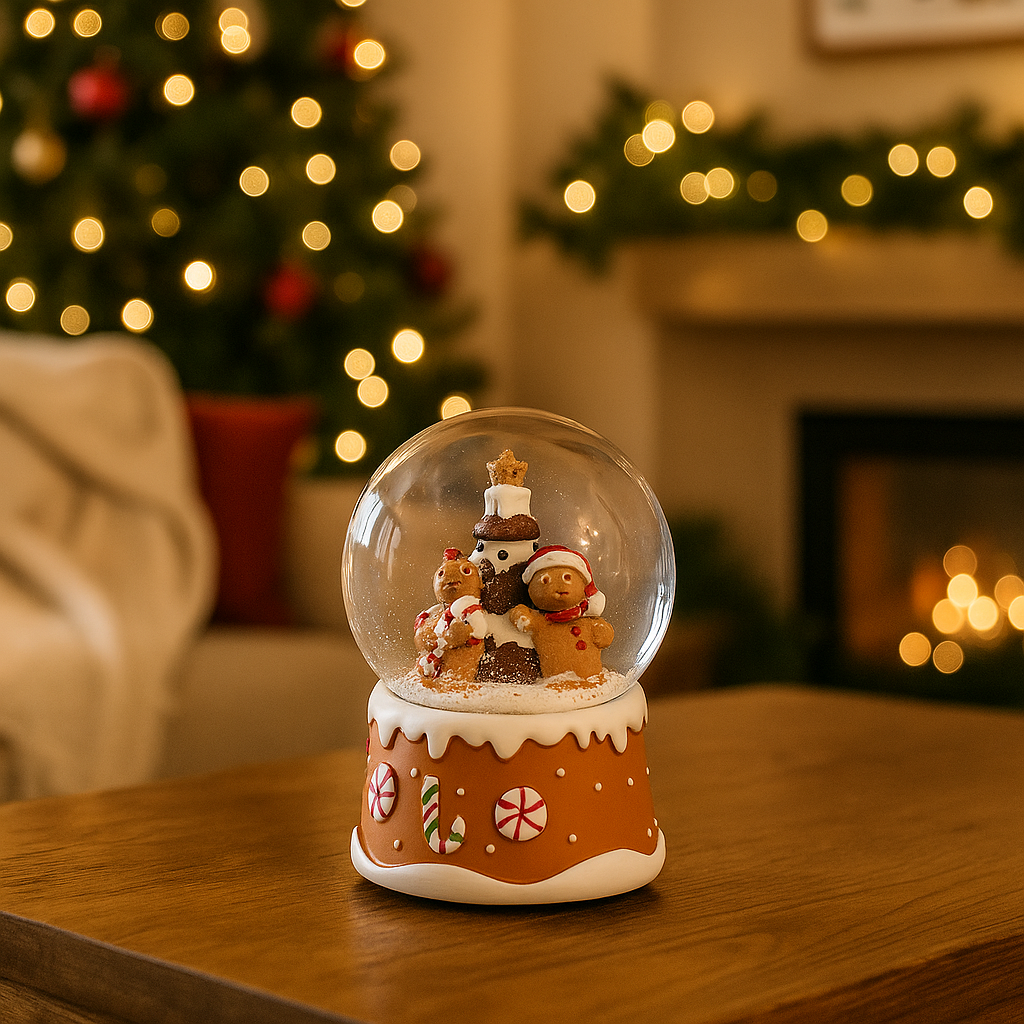 Con un diametro di 10 cm e un'altezza di 14 cm, questa sfera incapsula una scena incantevole e festiva che ricorda le tradizionali dolci del Natale.
