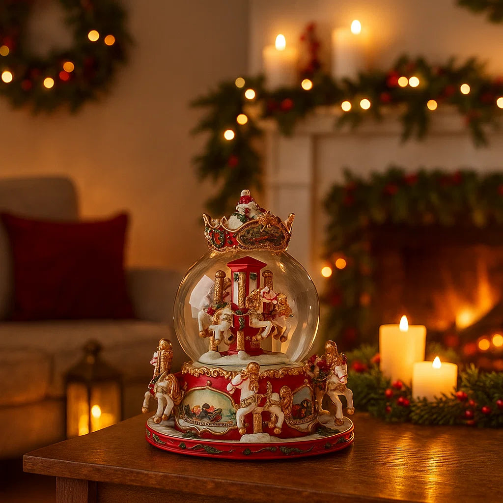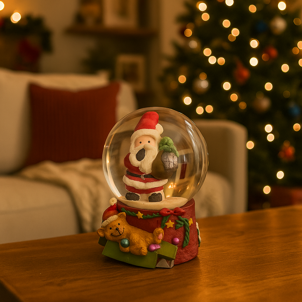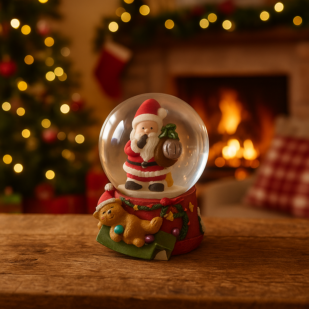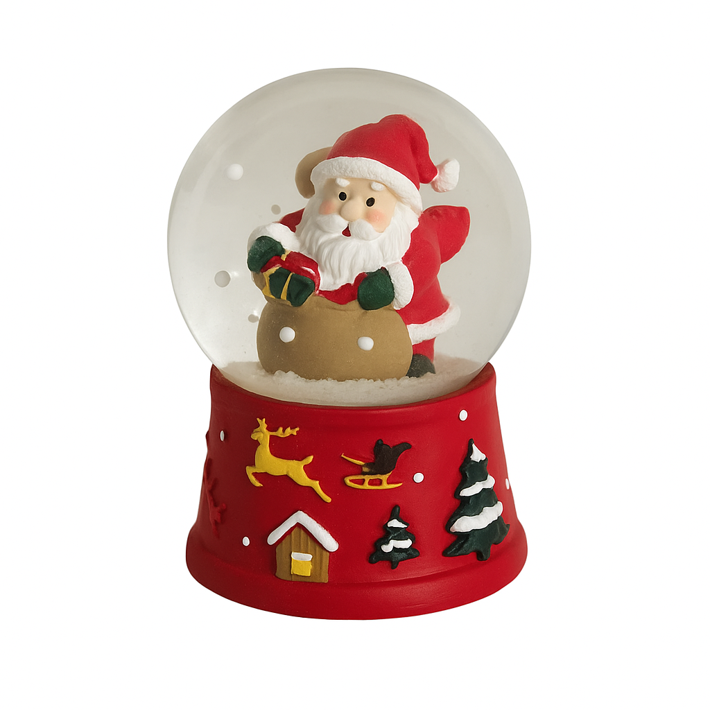 Alta 6.5 cm, la sfera di vetro racchiude una scena festosa con dettagli accurati, perfetta per aggiungere un tocco di magia e tradizione al tuo pranzo o cena natalizia.