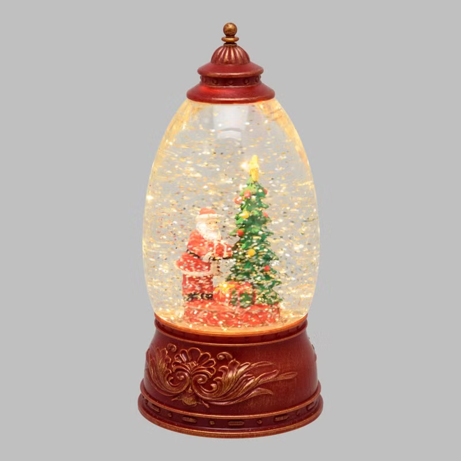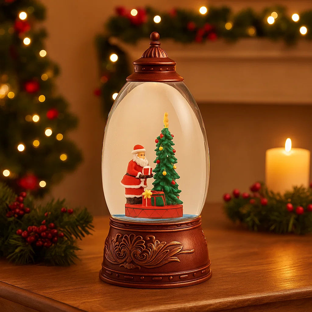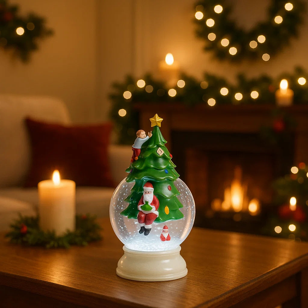 Immergiti nell'atmosfera magica del Natale con questa decorazione a batteria dalle forme uniche. Una sfera trasparente racchiude un meraviglioso scenario: un albero di Natale parzialmente immerso nell'acqua, con un simpatico Babbo Natale seduto alla base.