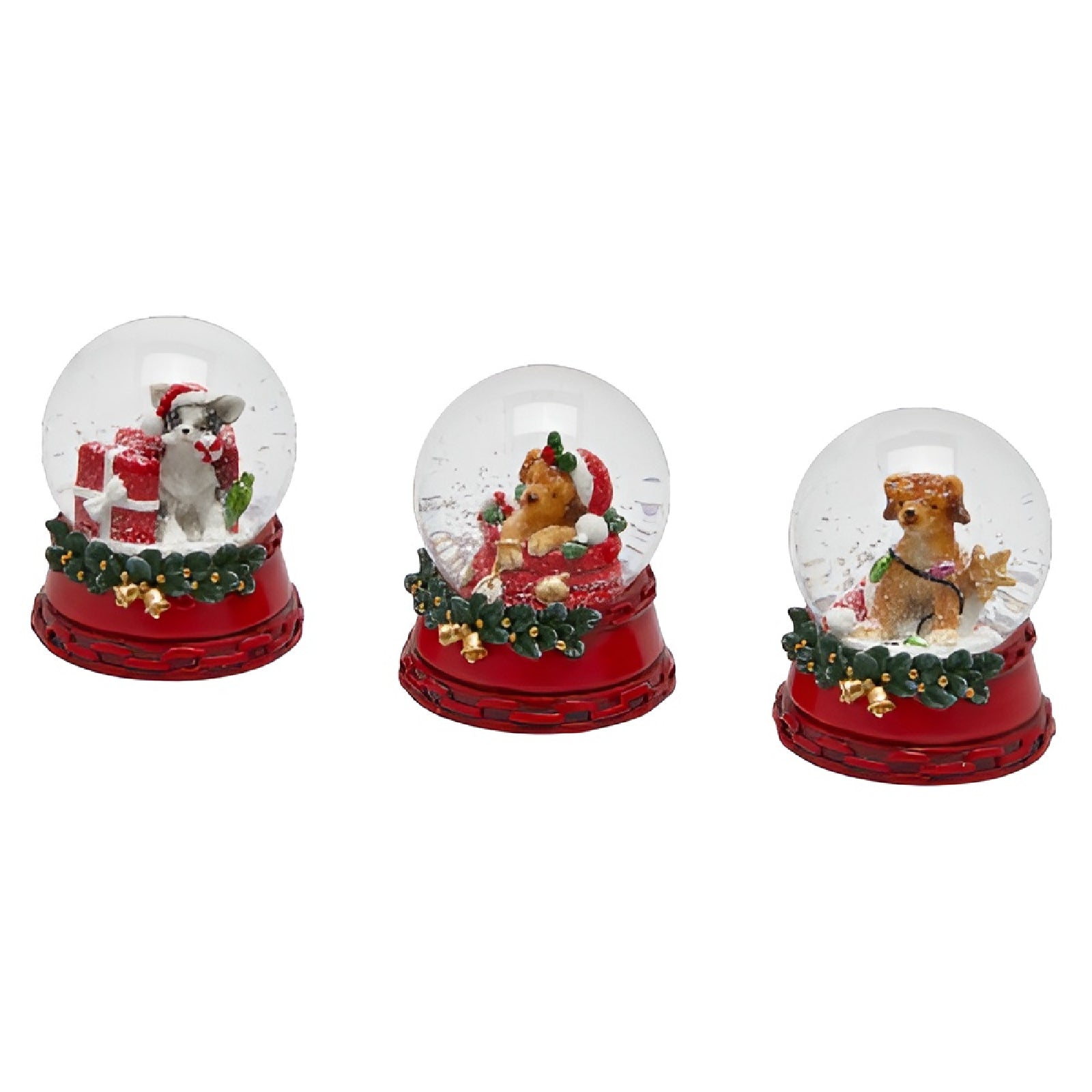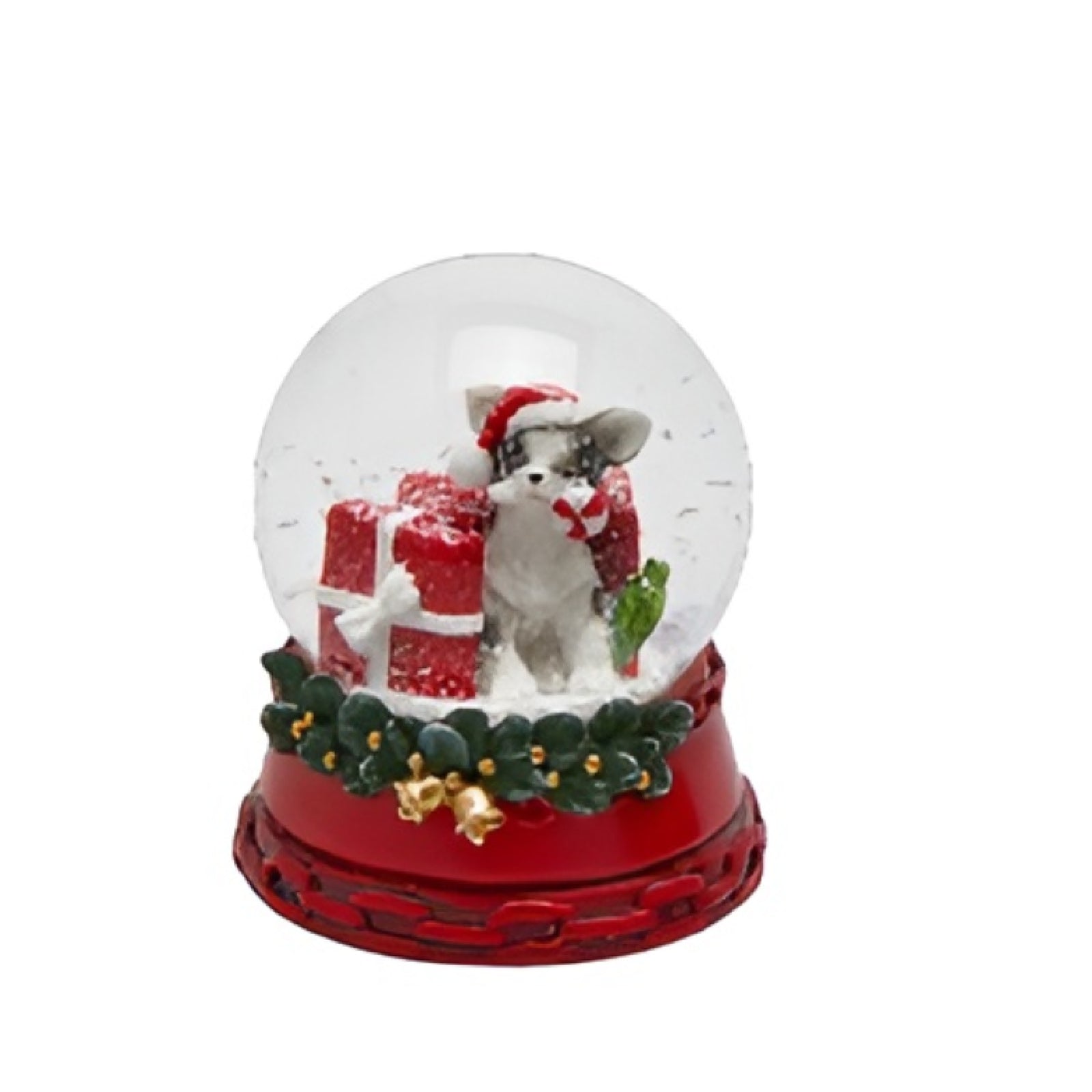 Sfera d'acqua con cagnolino, decorazione natalizia alta 9 cm